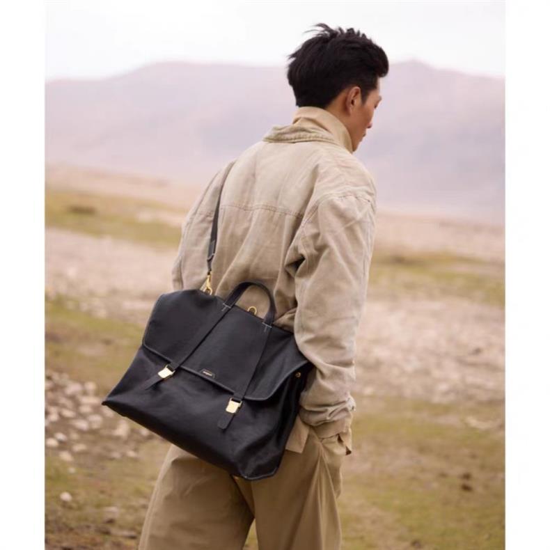 【王一通と同じスタイル】Songmont 山下裕松 山行旅行 ブリーフケース 植物タンニンなめしレザー クロスボディバックパック