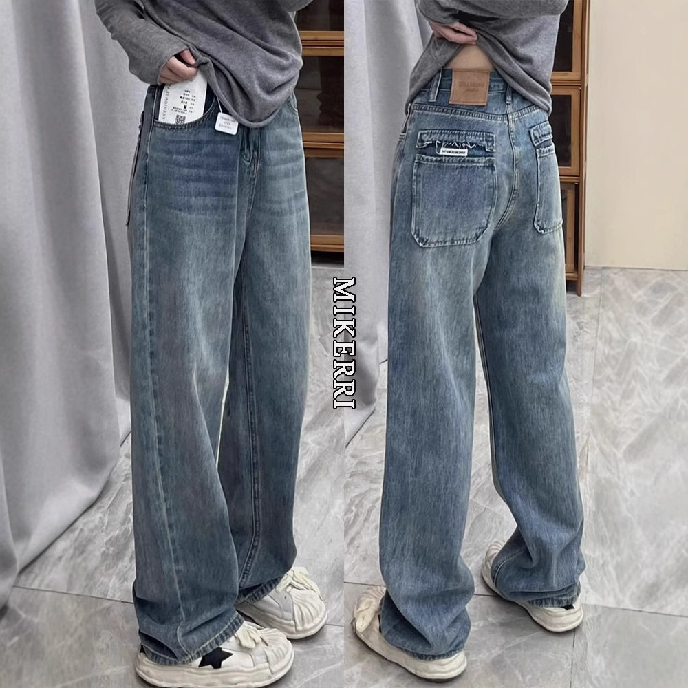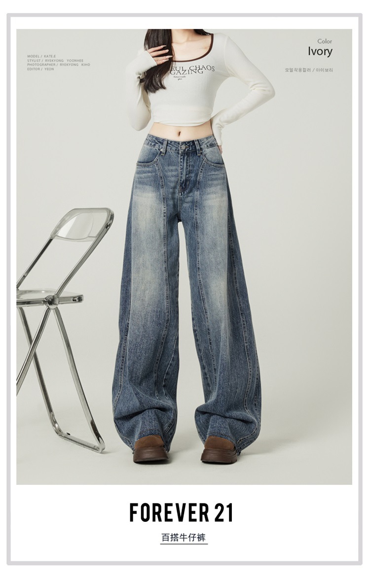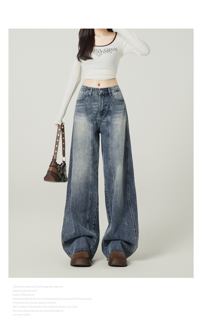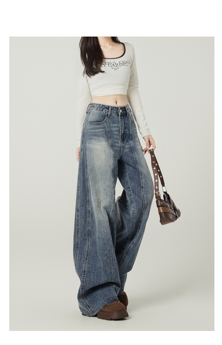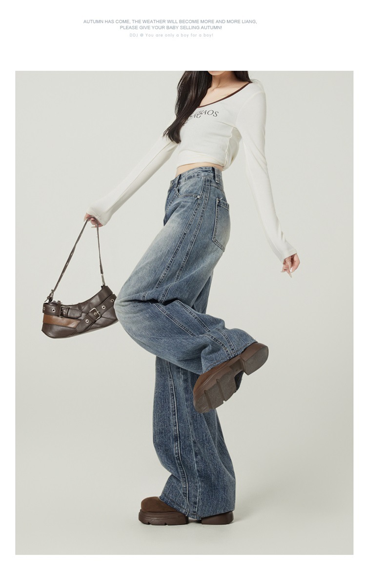 アメリカのレトロなワイドジーンズの女性は秋に腰が高くてゆったりしています。