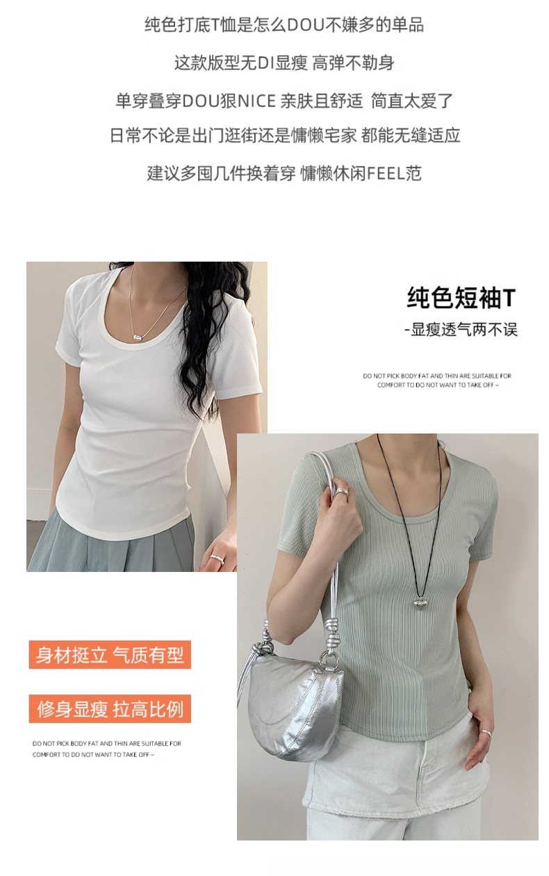 韩系白色U领正肩短袖T恤女夏季百搭修身显瘦打底上衣