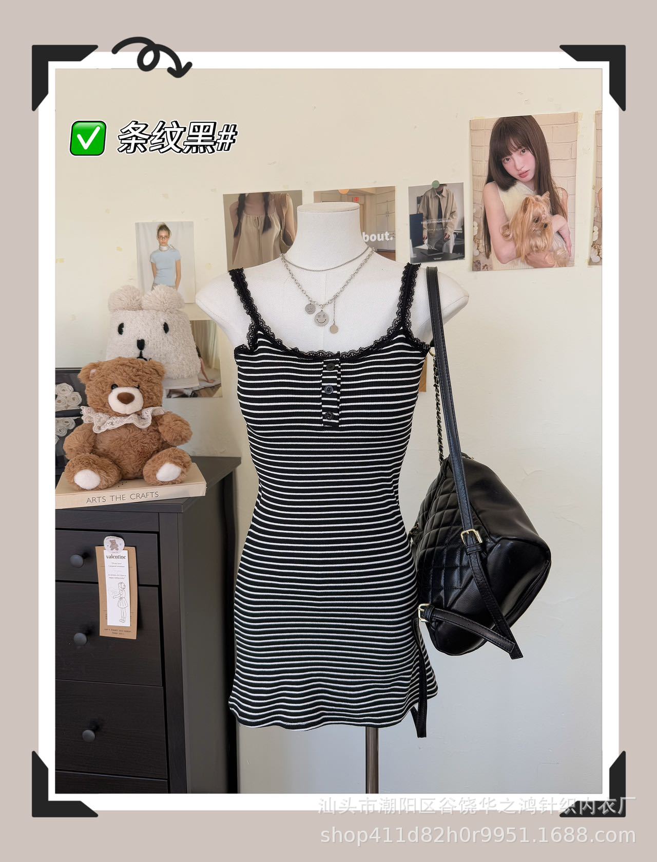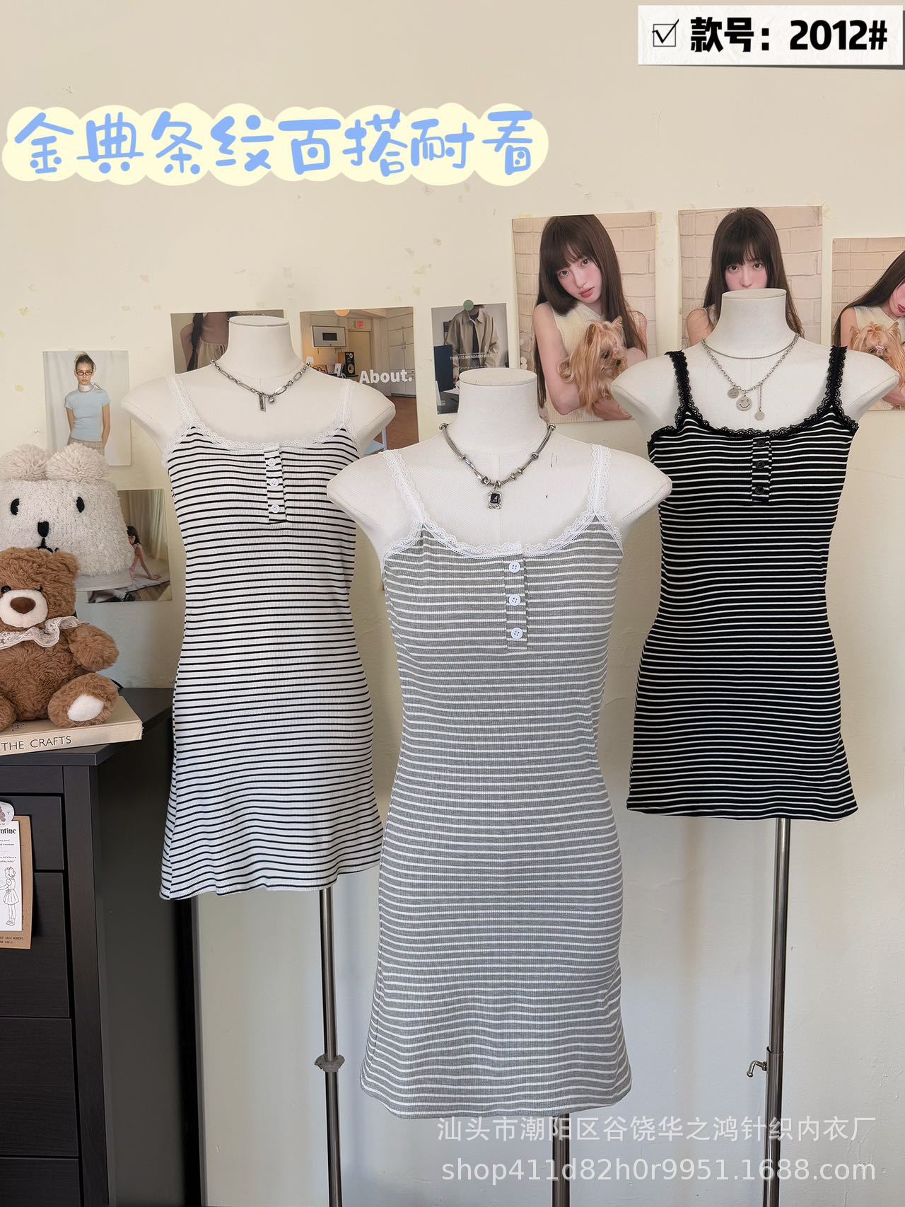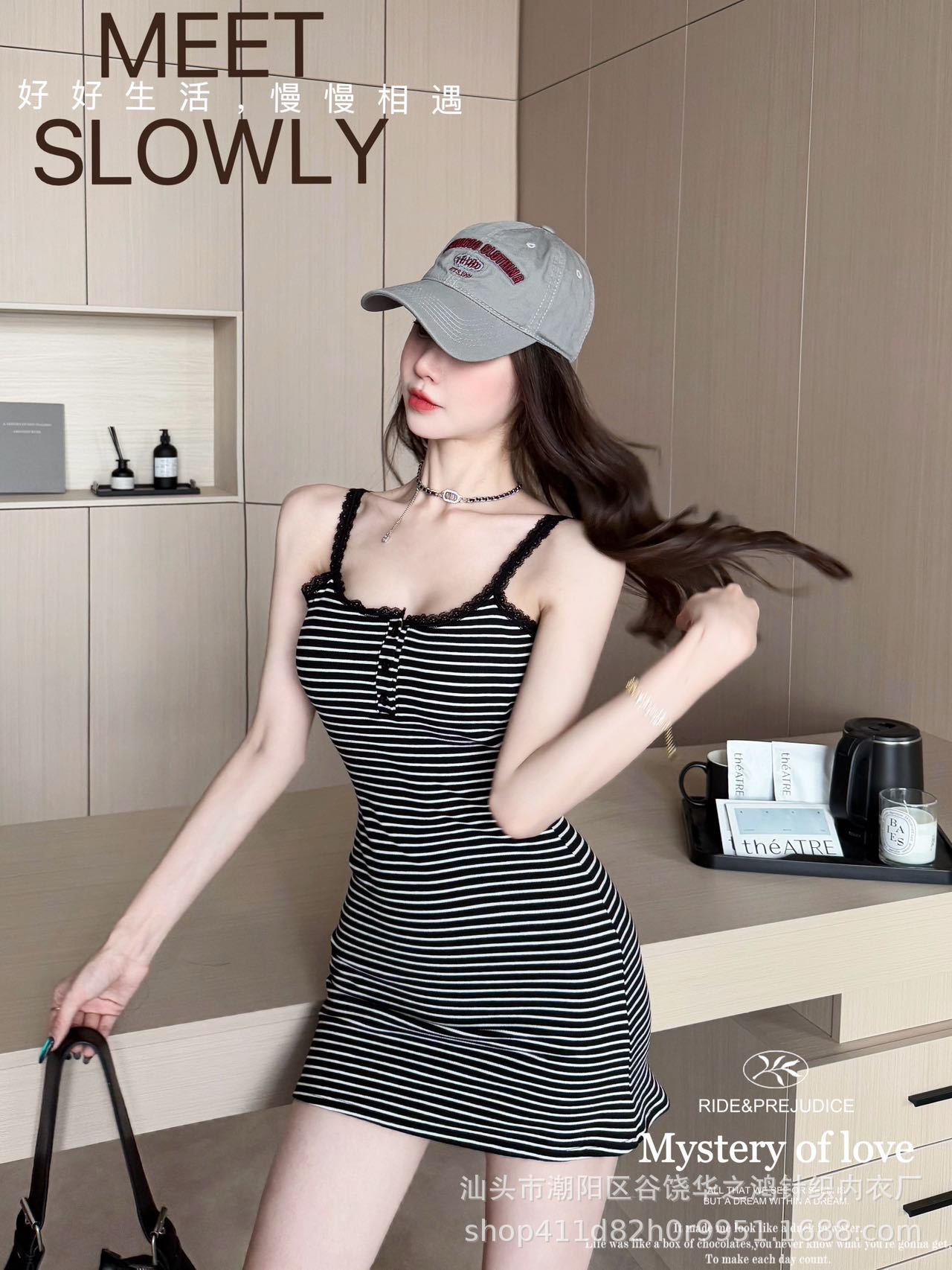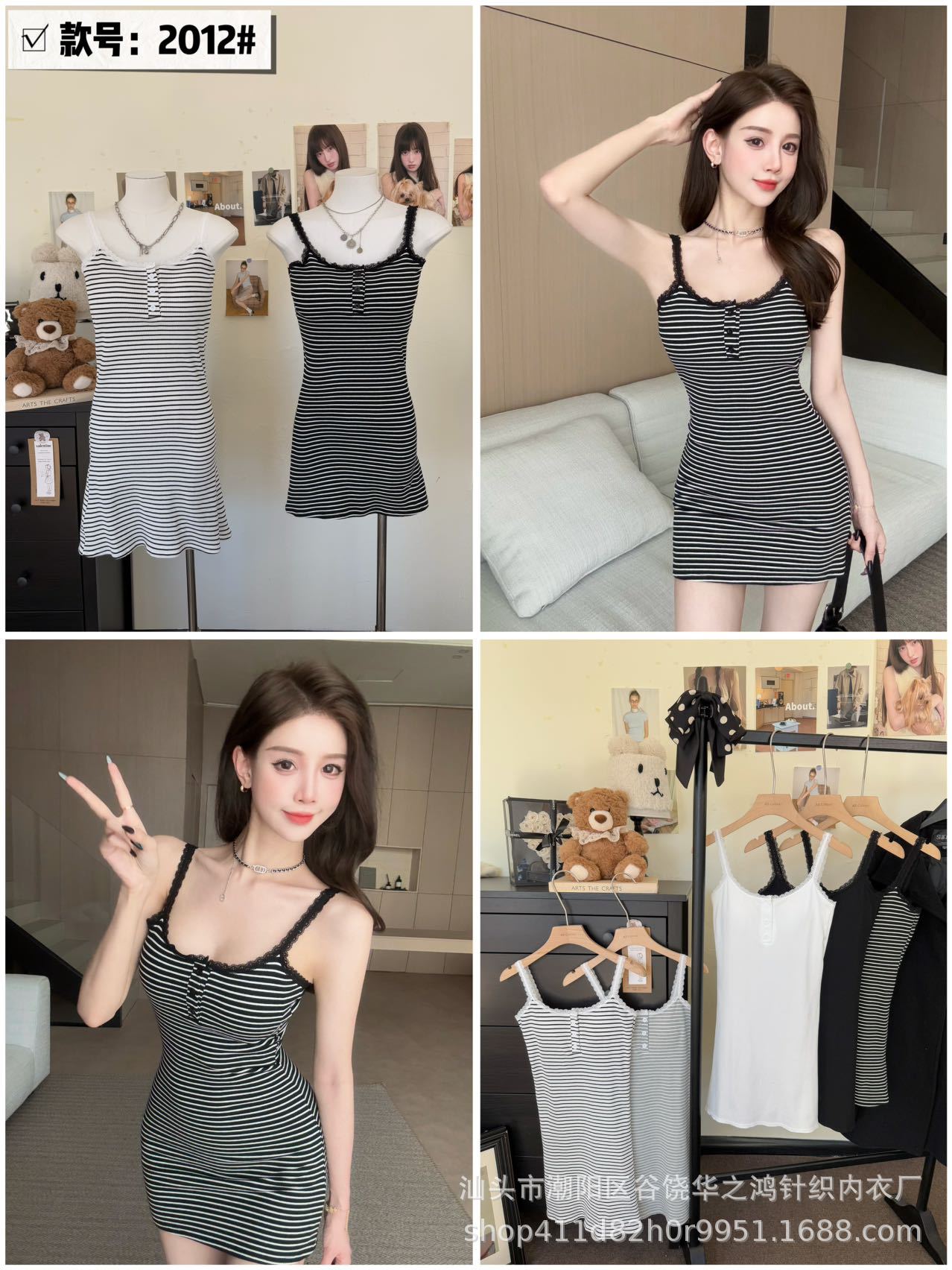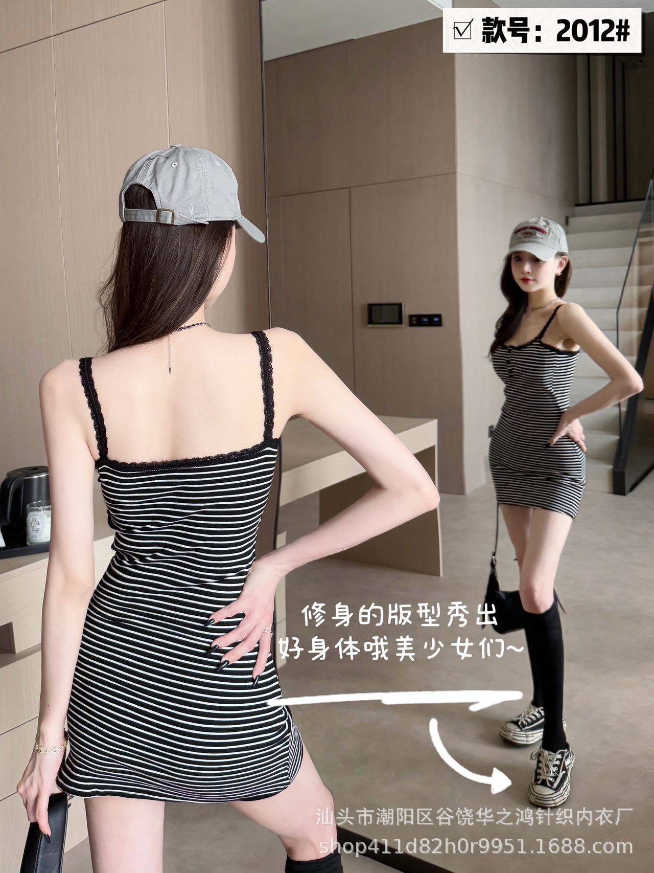 胸パッド付きの夏の定番ストライプサスペンダードレス、ホットガールのインナーとアウター、スリムフィットのピュアディザイアスカート、工場直販