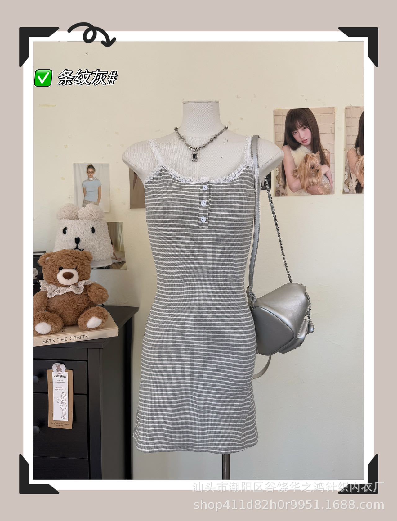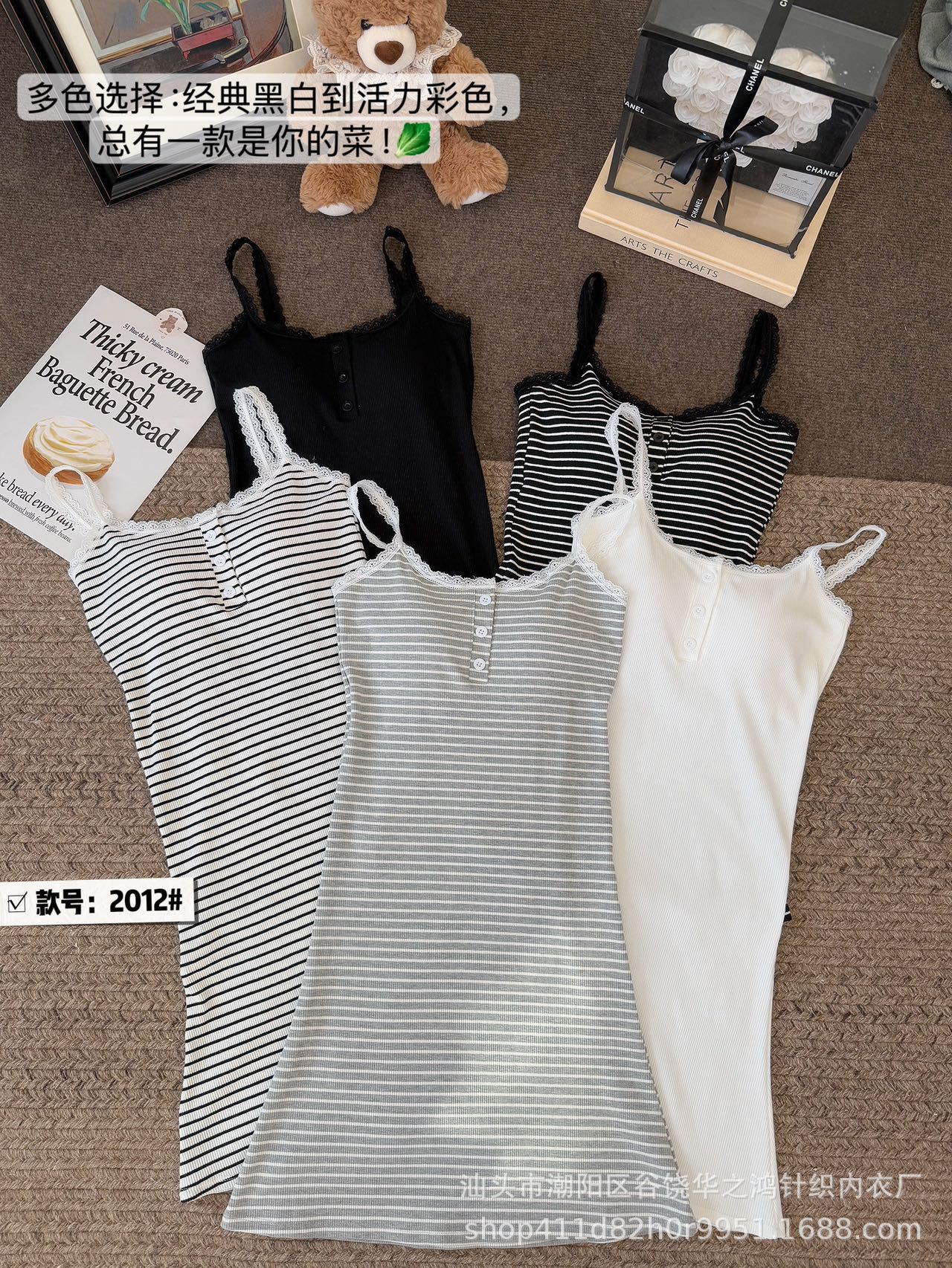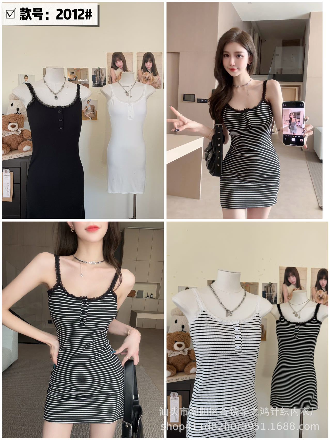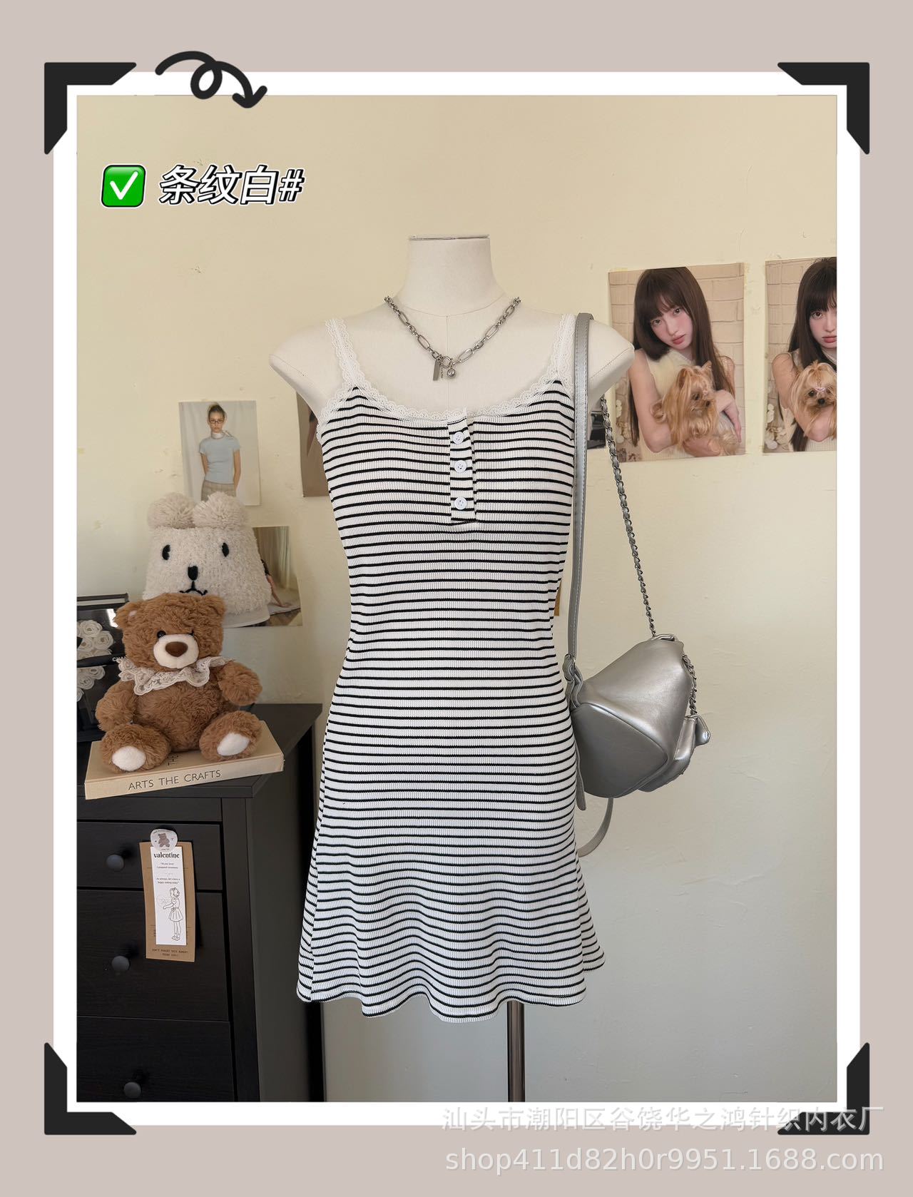 胸パッド付きの夏の定番ストライプサスペンダードレス、ホットガールのインナーとアウター、スリムフィットのピュアディザイアスカート、工場直販