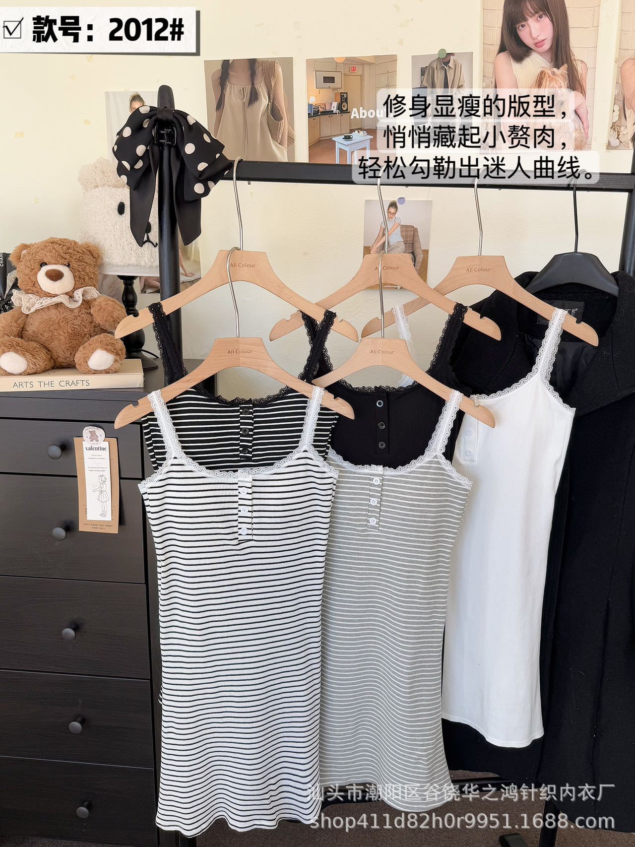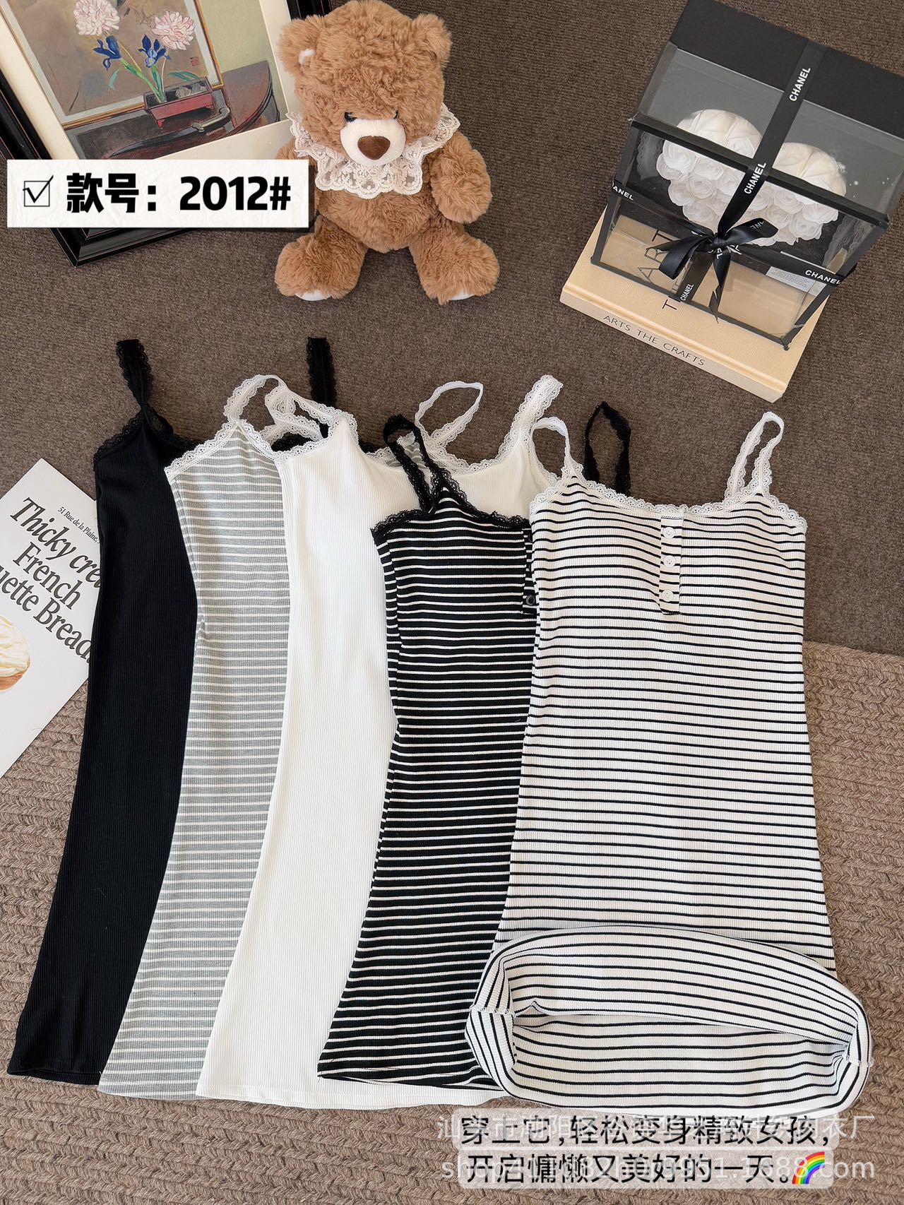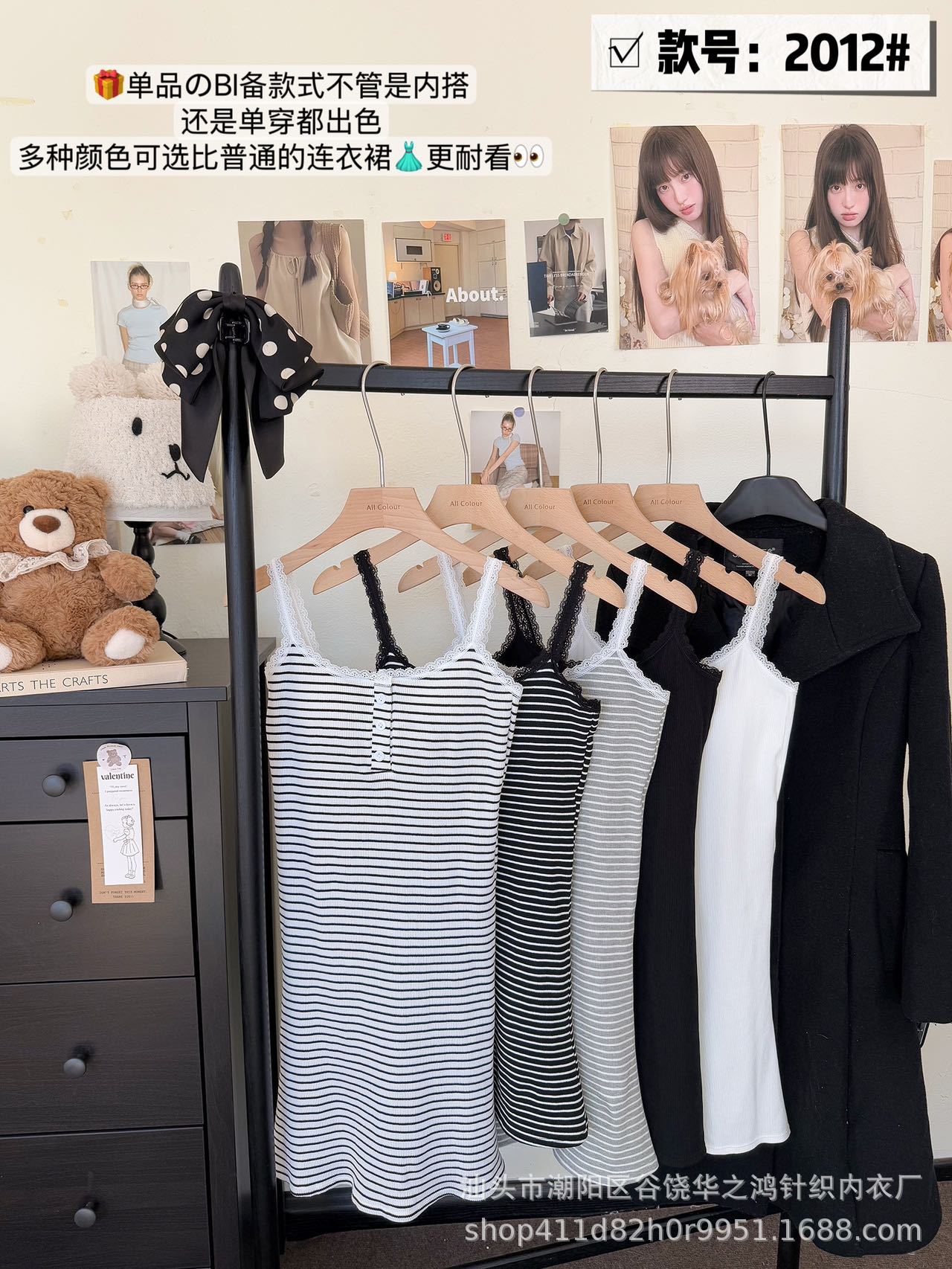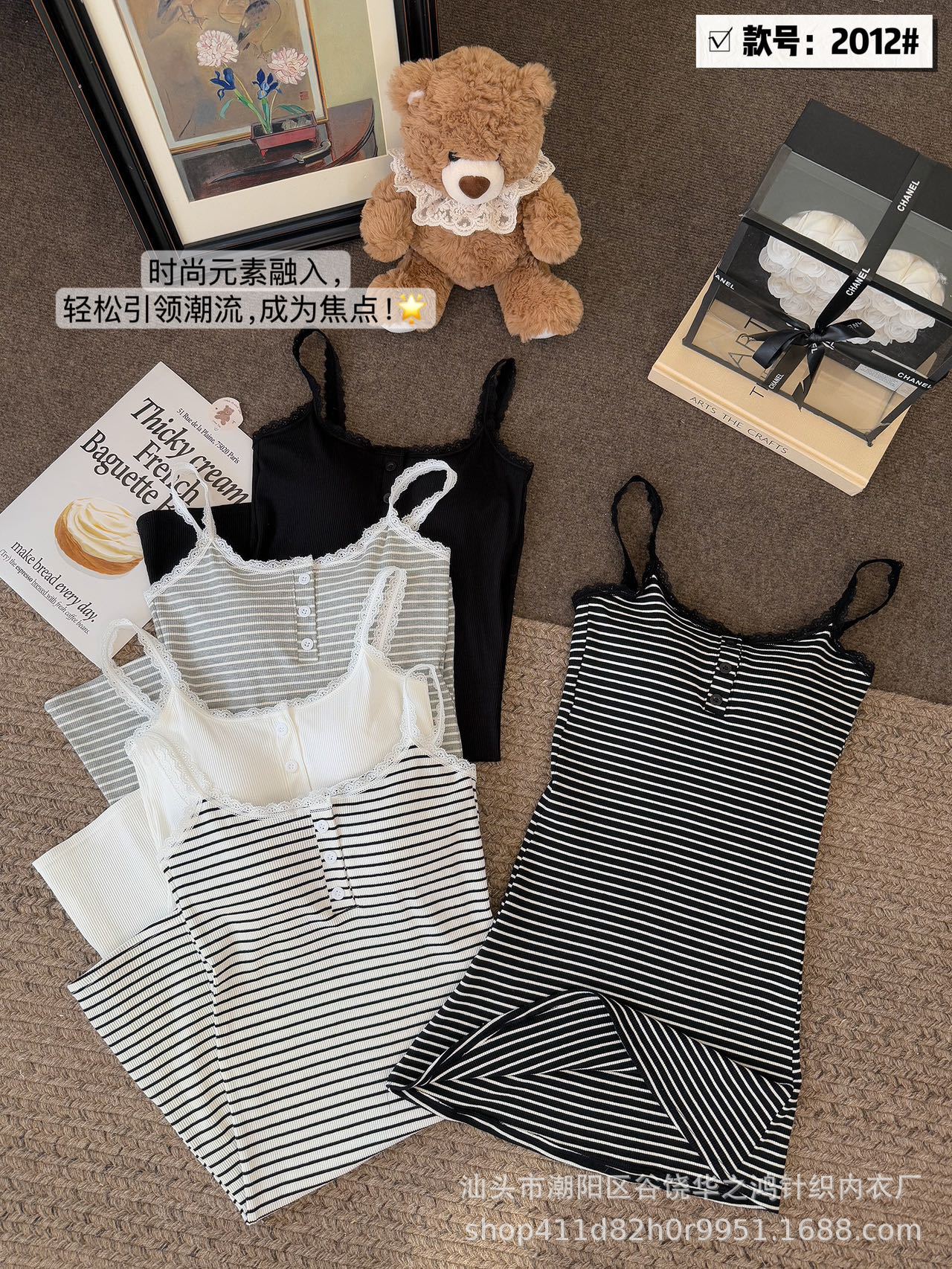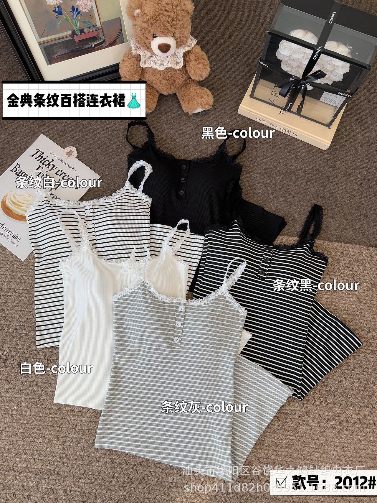 胸パッド付きの夏の定番ストライプサスペンダードレス、ホットガールのインナーとアウター、スリムフィットのピュアディザイアスカート、工場直販