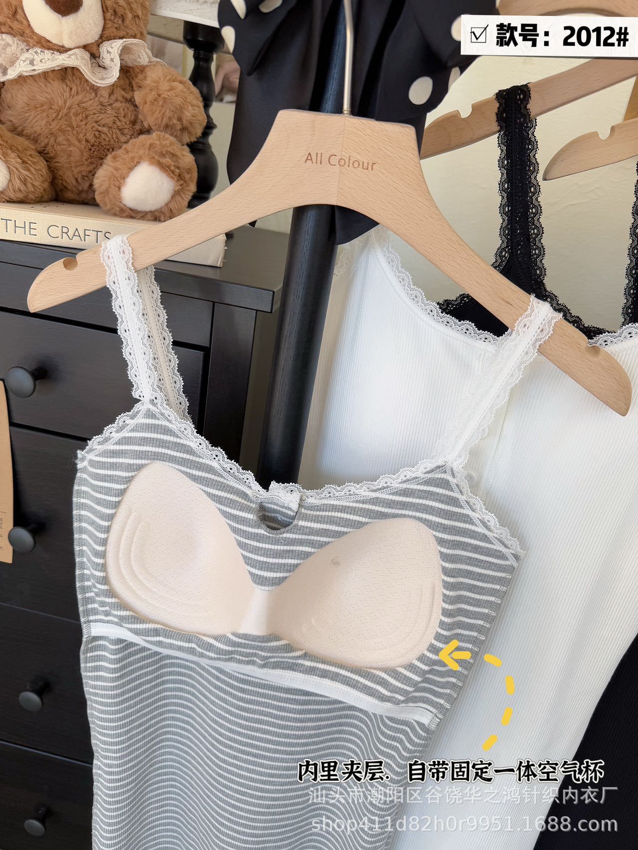 新商品の蝶結びのレースの縁には、胸パッド付きのキャミソールがあります。