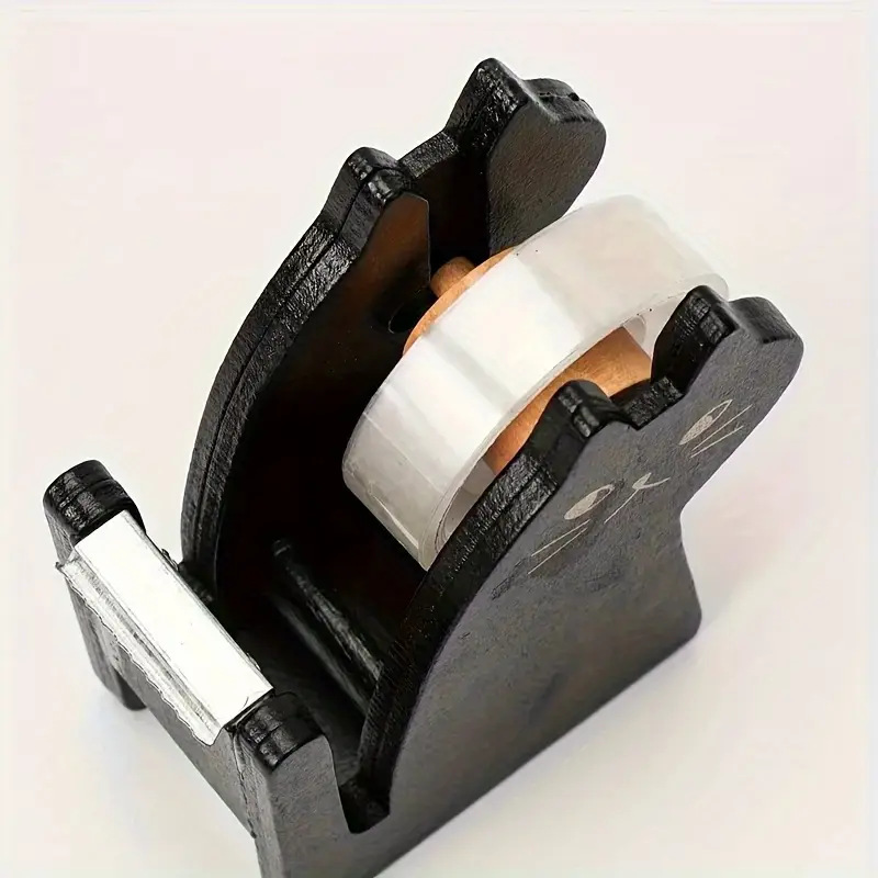 越境アマゾン 可愛い子猫テープカッター 木製置物 テープホルダー 卓上透明テープカッター