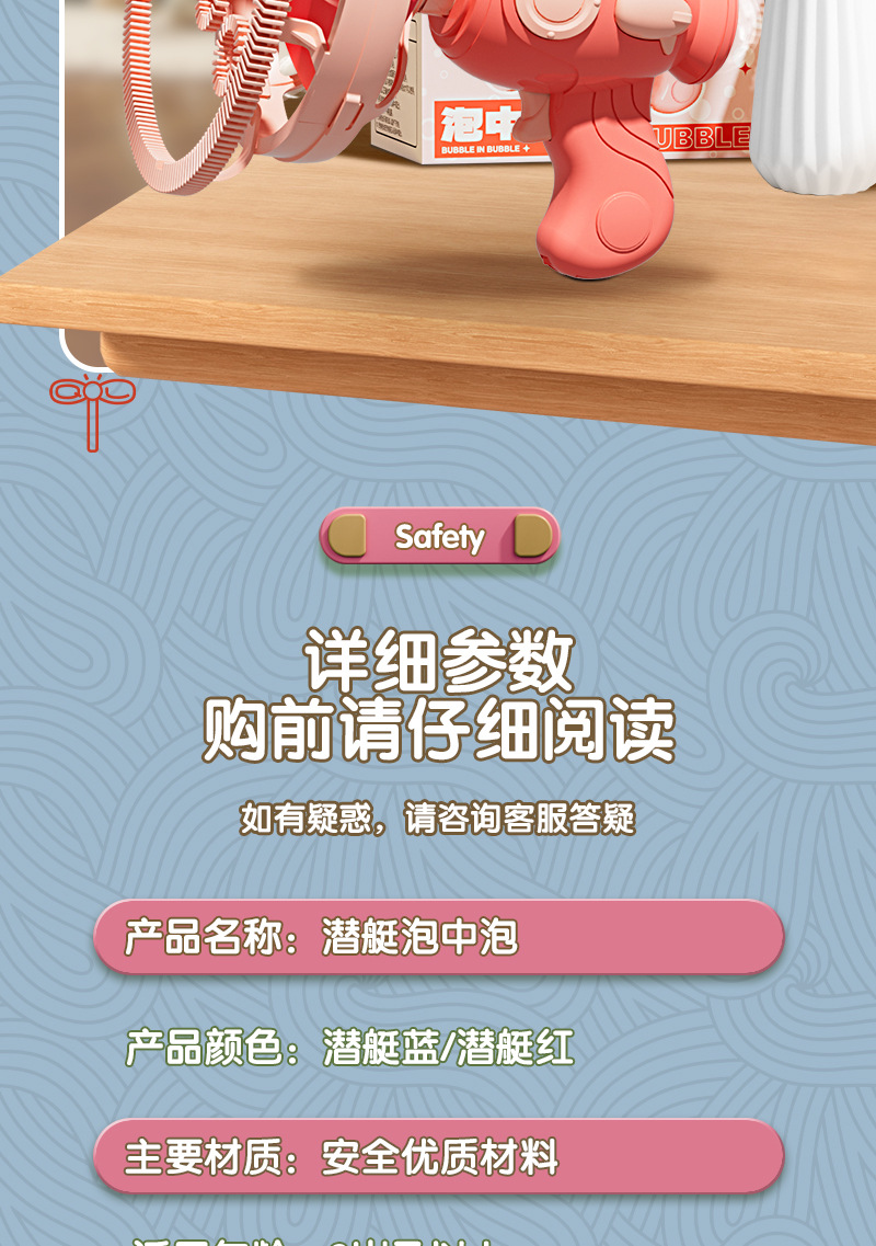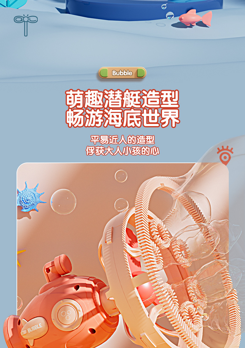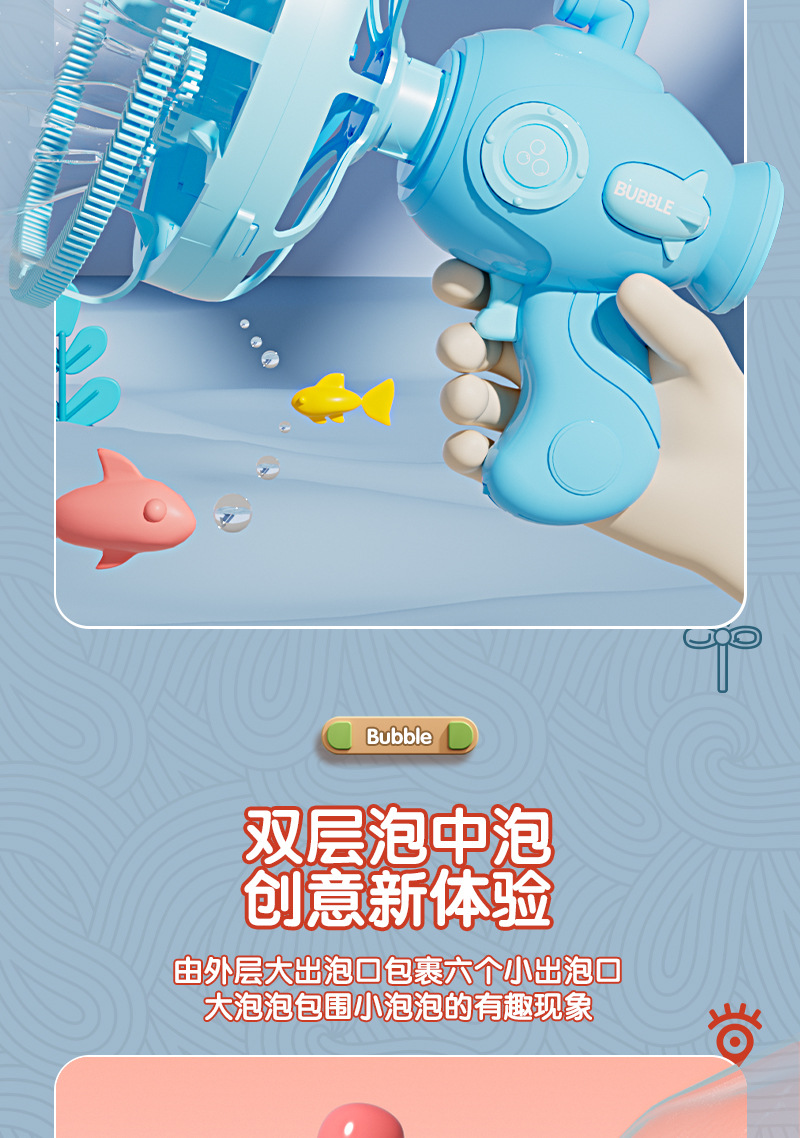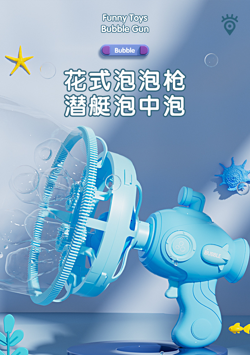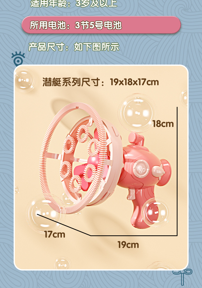 儿童潜艇泡泡枪花式泡中泡一键启动电动泡泡机卡通萌趣儿童玩具