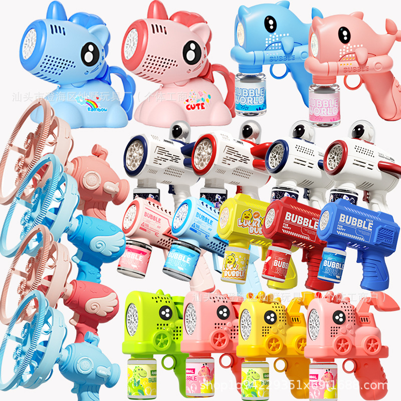 跨境爆款天使泡泡枪花式泡中泡一键启动电动大泡泡机儿童玩具批发