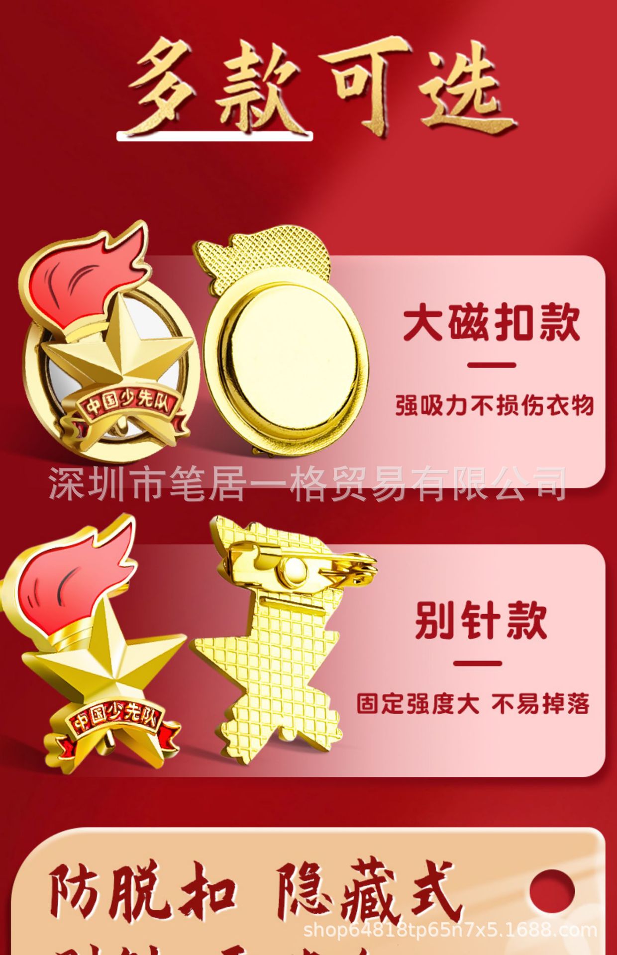 新型国標少先隊隊紋章小学生ピン磁石バッジ胸章標準型卸売りメーカー