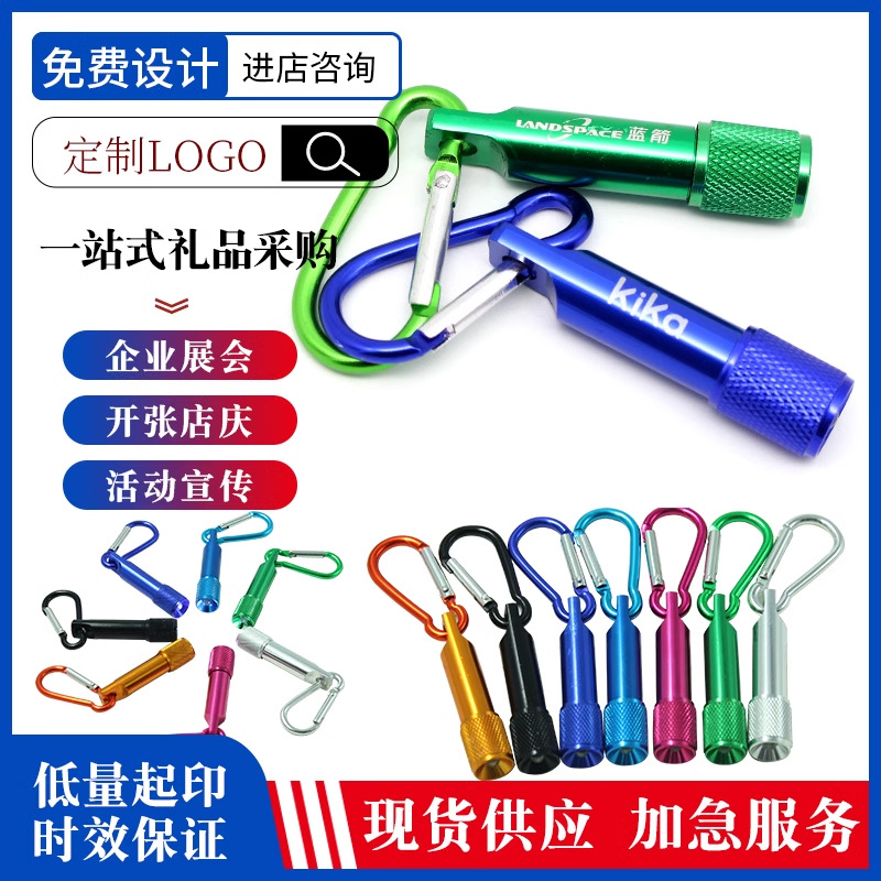 メーカー卸売プリントロゴカラビナ懐中電灯クロスボーダーギフトランプコロンビア LED 強力な光ミニ懐中電灯