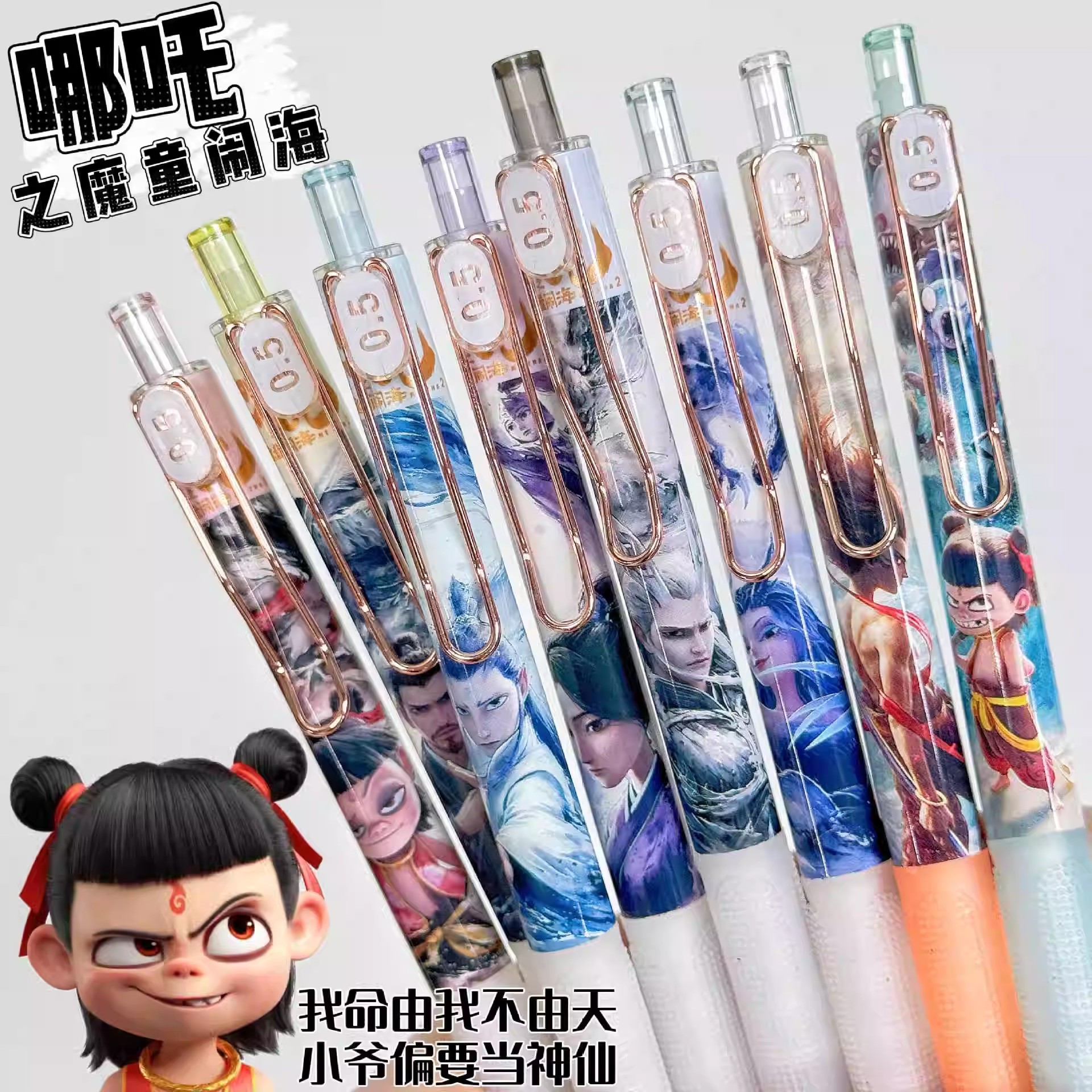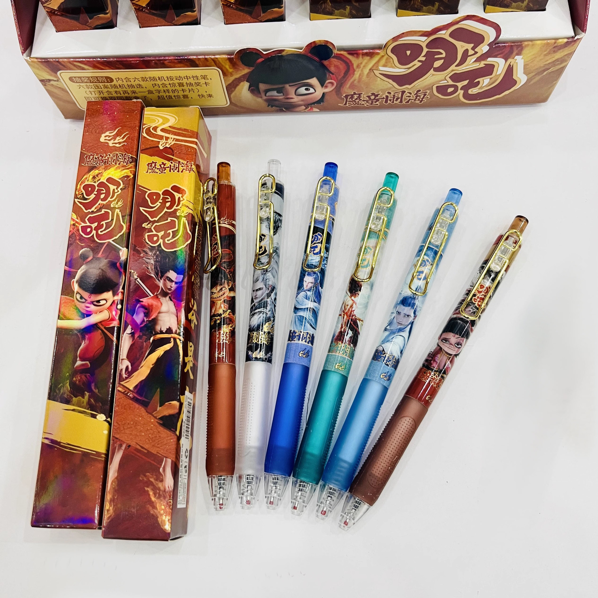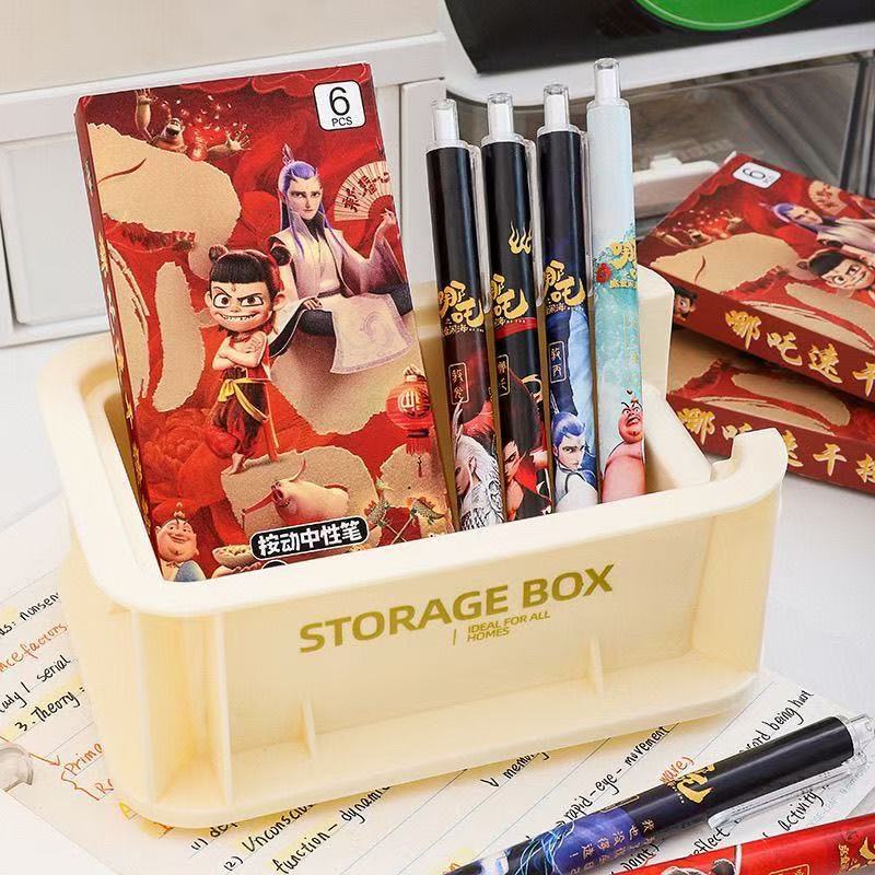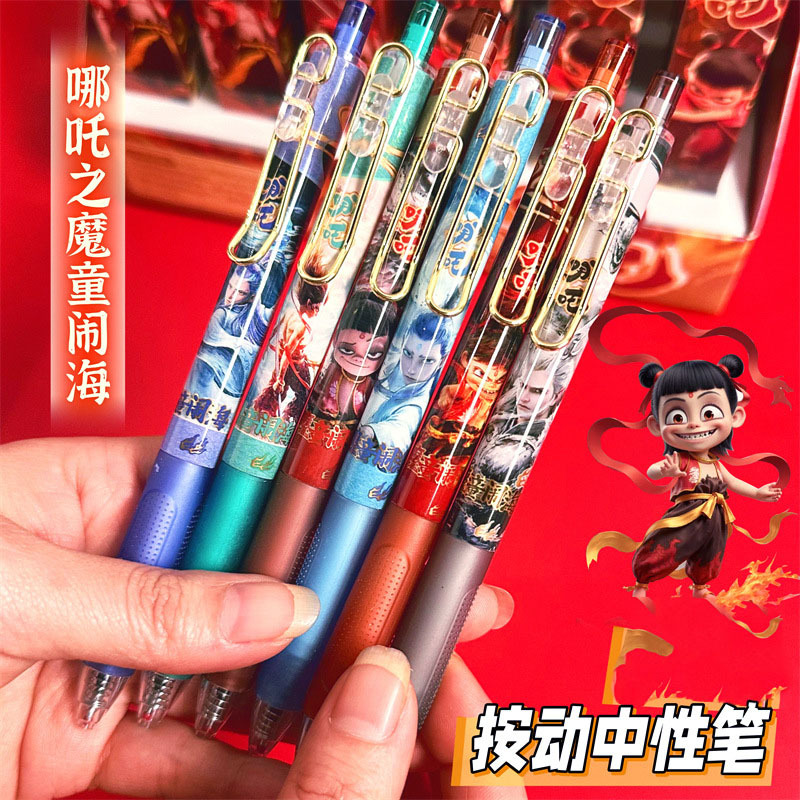 新款哪吒魔童闹海6支一盒盲盒速干中性笔高颜值按动黑色刷题学生