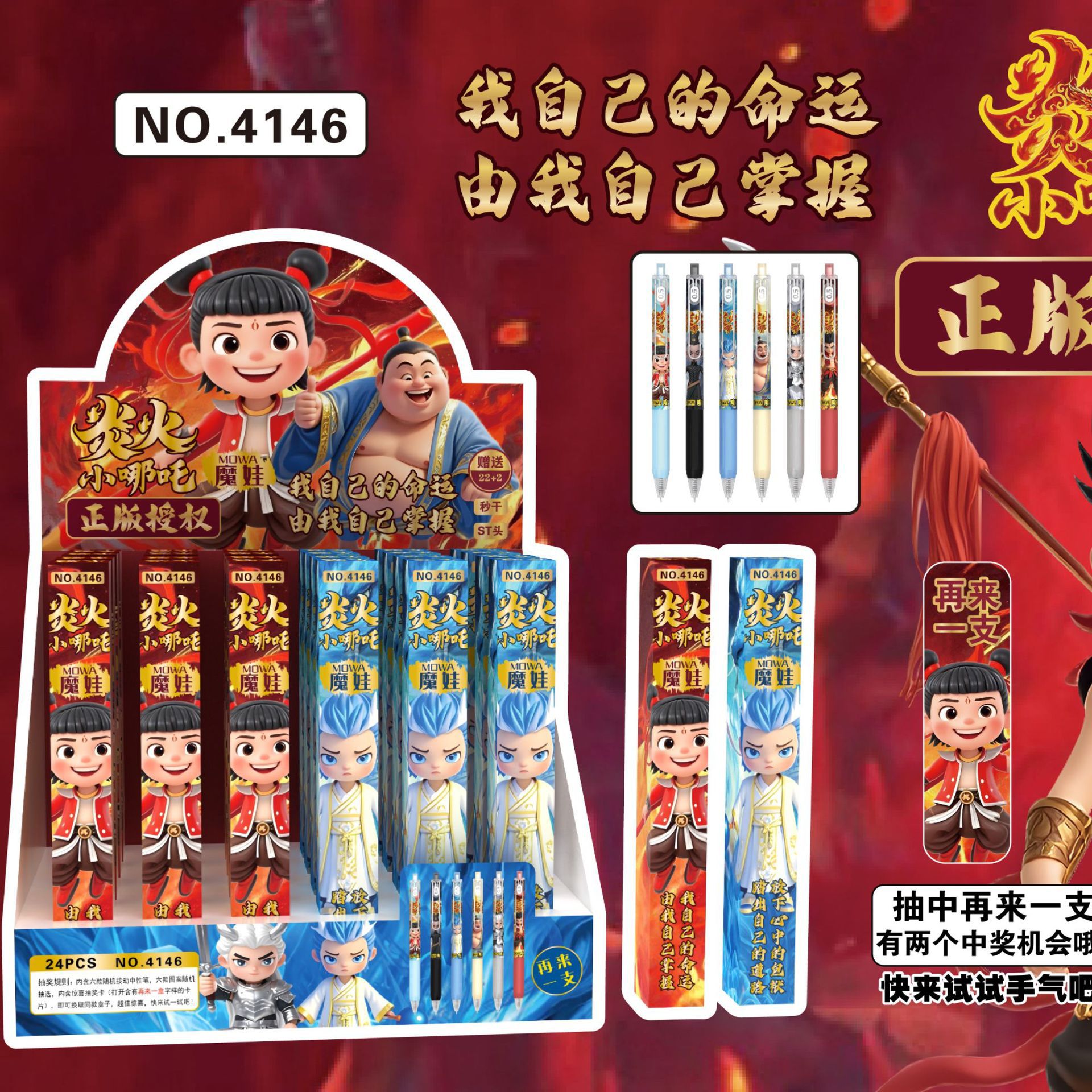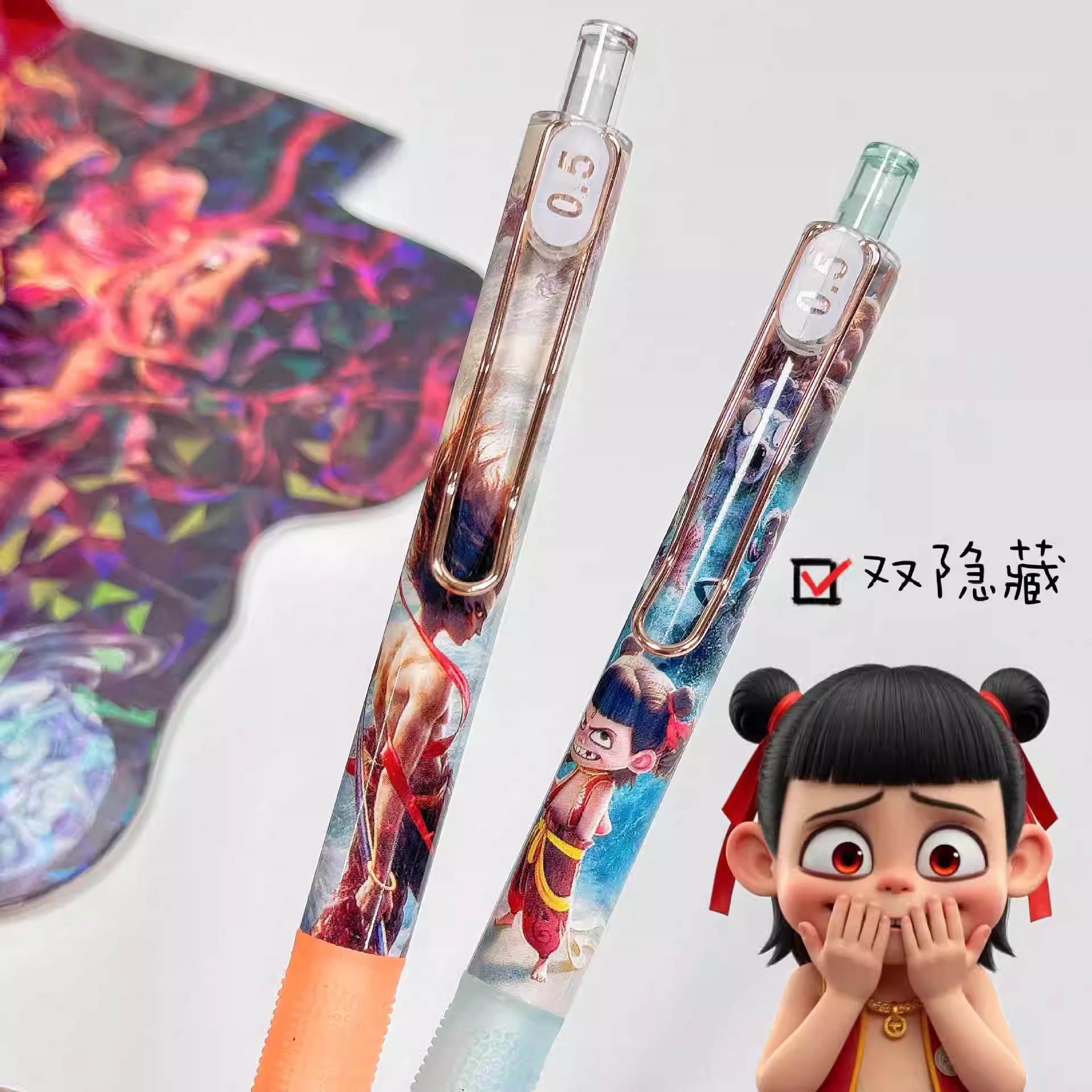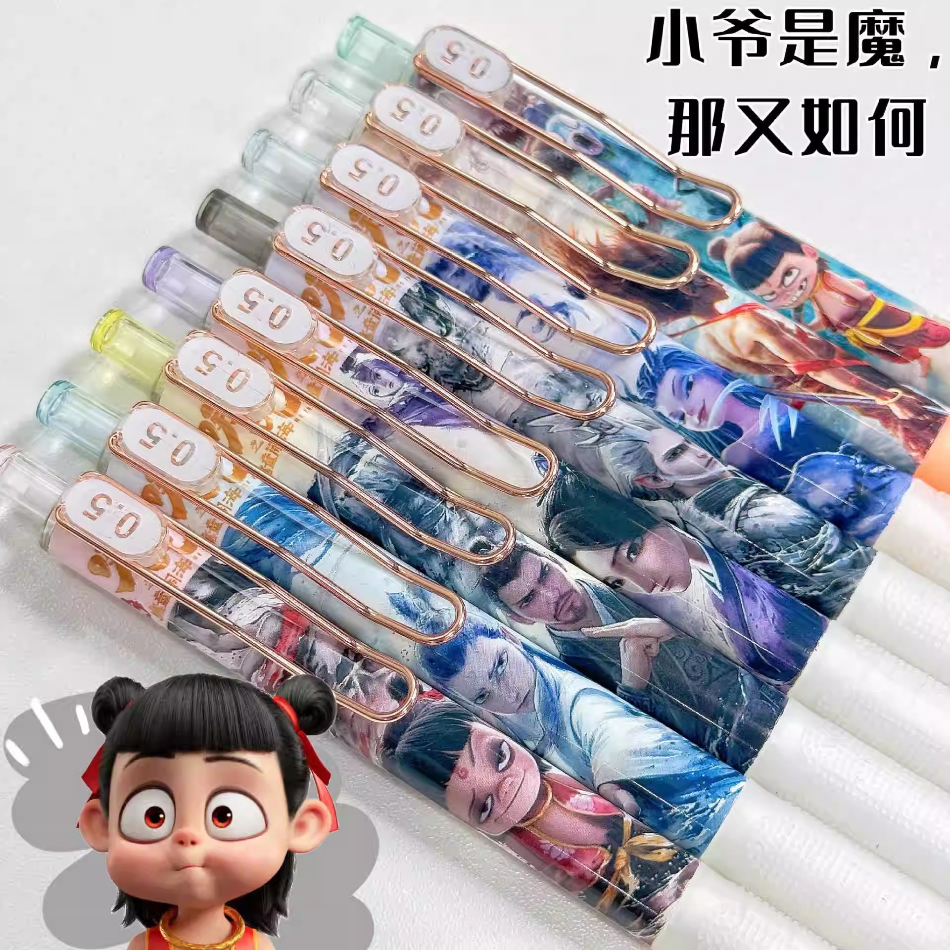 新款哪吒魔童闹海6支一盒盲盒速干中性笔高颜值按动黑色刷题学生