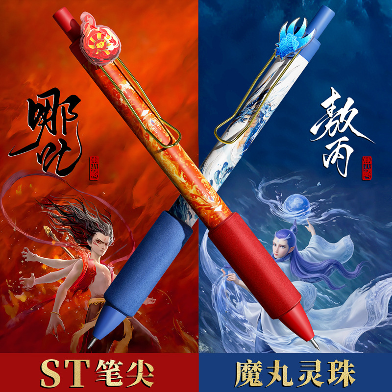 哪吒按动中性笔高颜值国风小学生刷题笔中国风st头速干黑色水笔