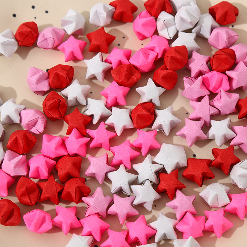 卸売りdiy手作り紙星完成品純色キャンディー色願い事星プリント模様幸運星折り紙