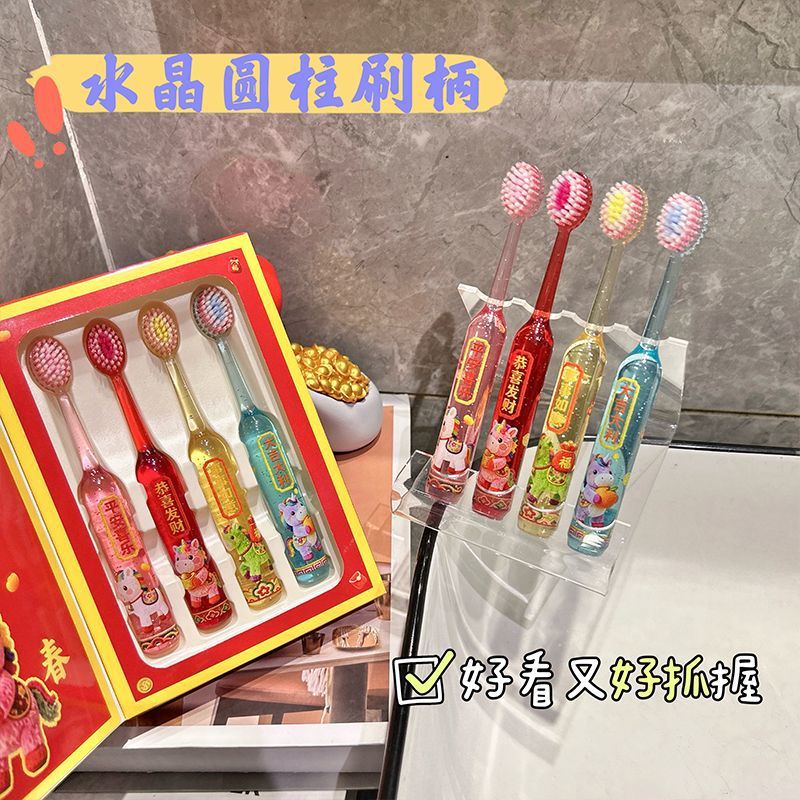 马年限定礼盒山型凸面软毛儿童牙刷凸面清洁婴童安全梳子新年款
