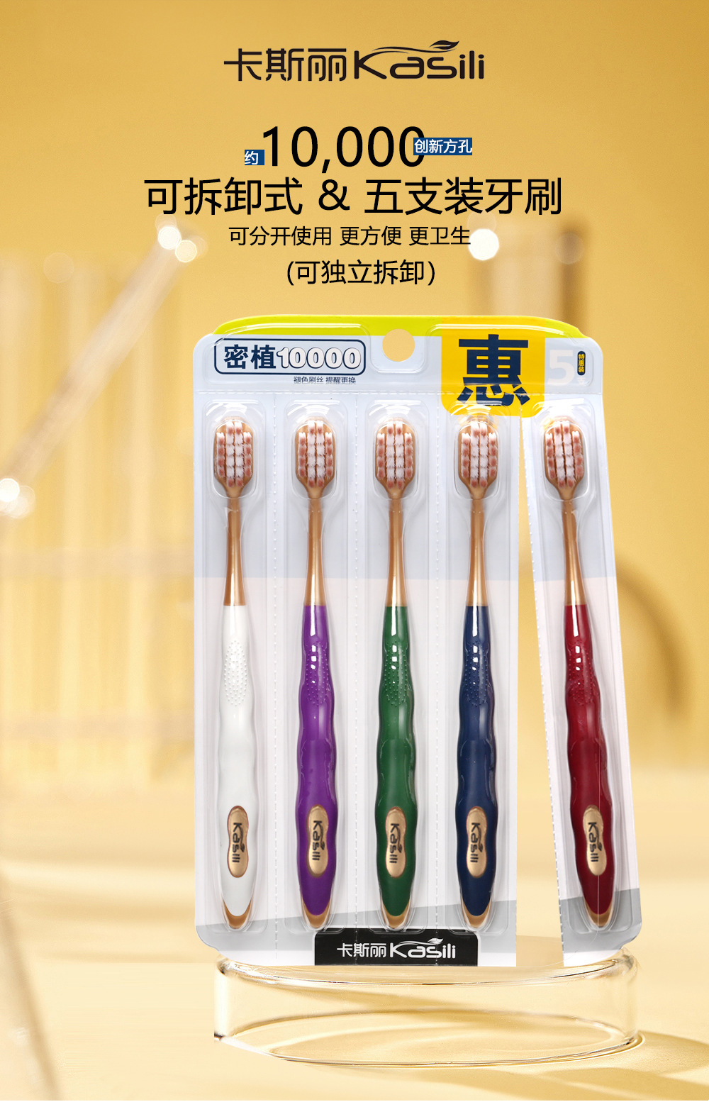 Casley/高級家庭用セット 歯ブラシ5本 モランディ 大人用 ワイドヘッド 柔らかい毛 独立した極細ソフトフィラメント