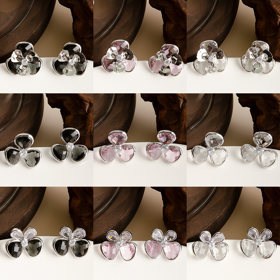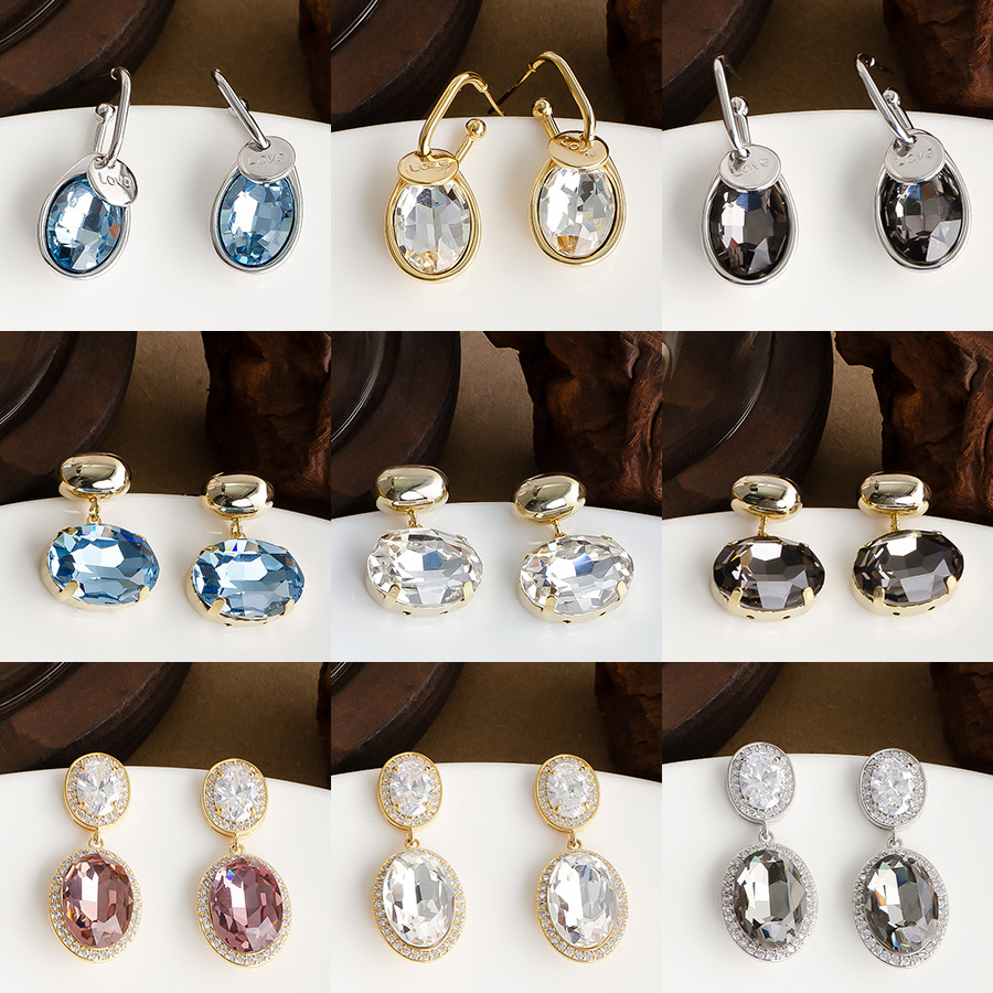 欧米国境を越えたs925銀針ピアス切断面水晶ジルコン楕円軽贅沢高級感イヤリング