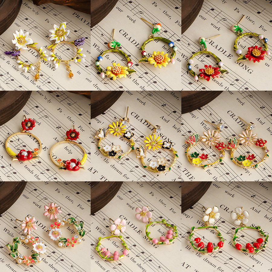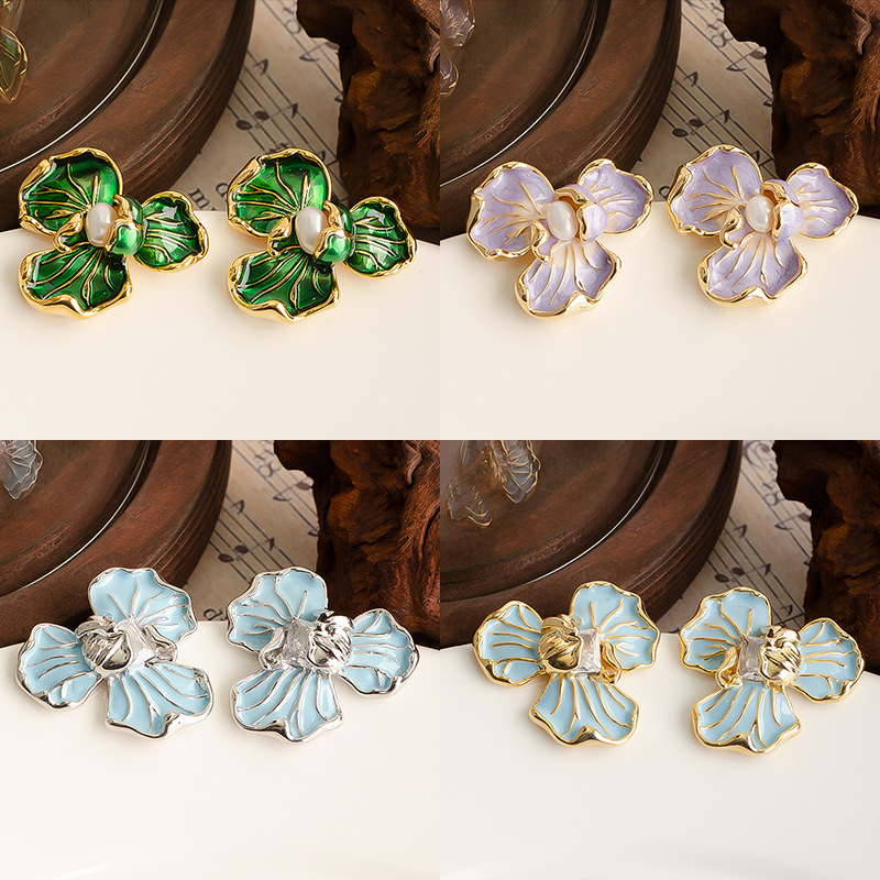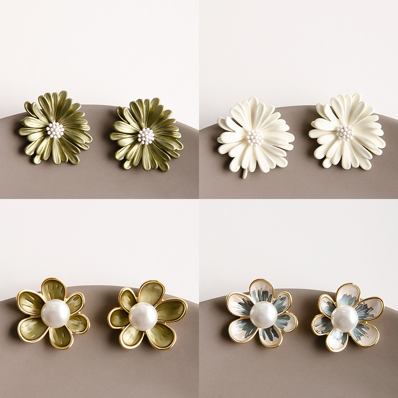 韓国の爆発的なデイジー真珠s925銀針ピアス甘いフレッシュな花エナメル画油イヤリングイヤリング