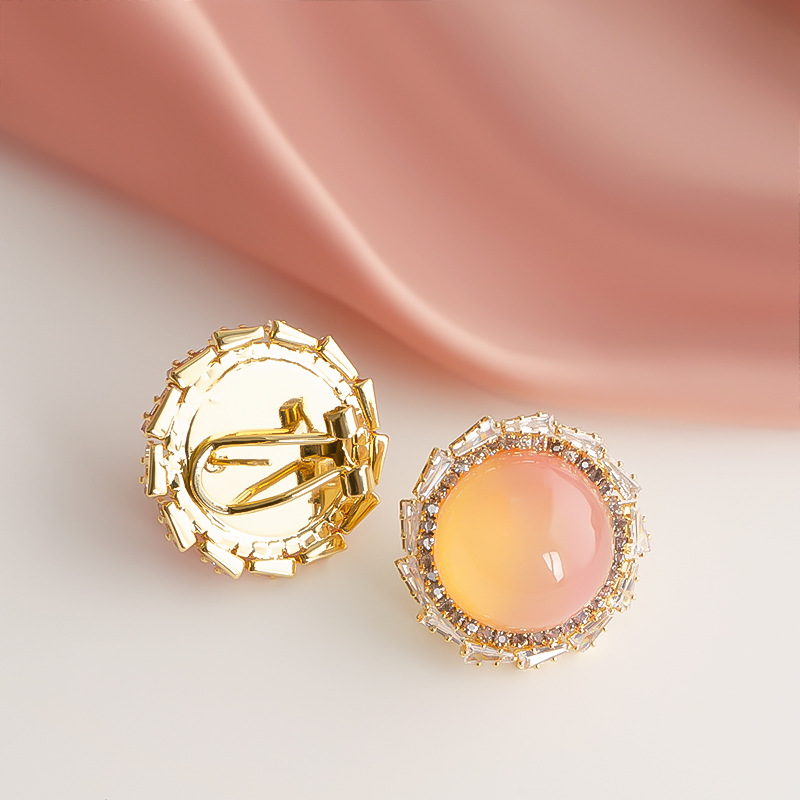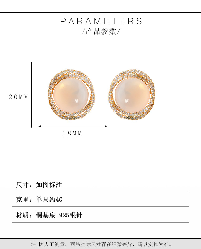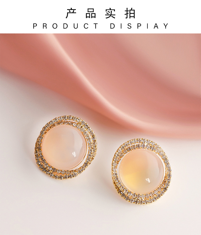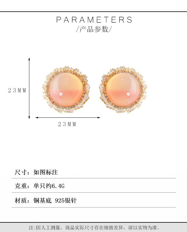 ピンク樹脂ジルコンS925銀針ピアス円形イヤリングキャンディー色甘い少女風耳飾り