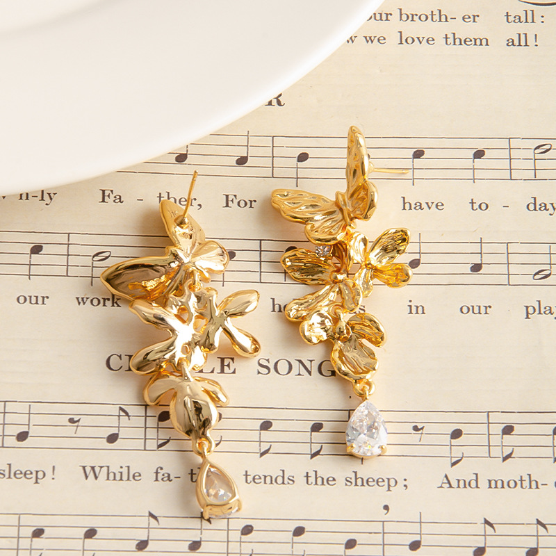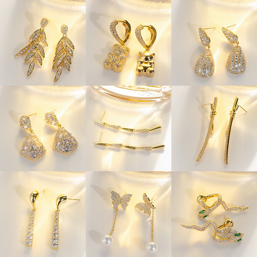 軽豪華高級感s925銀針満ジルコニウム水滴蝶小蛇流蘇イヤリング耳飾り