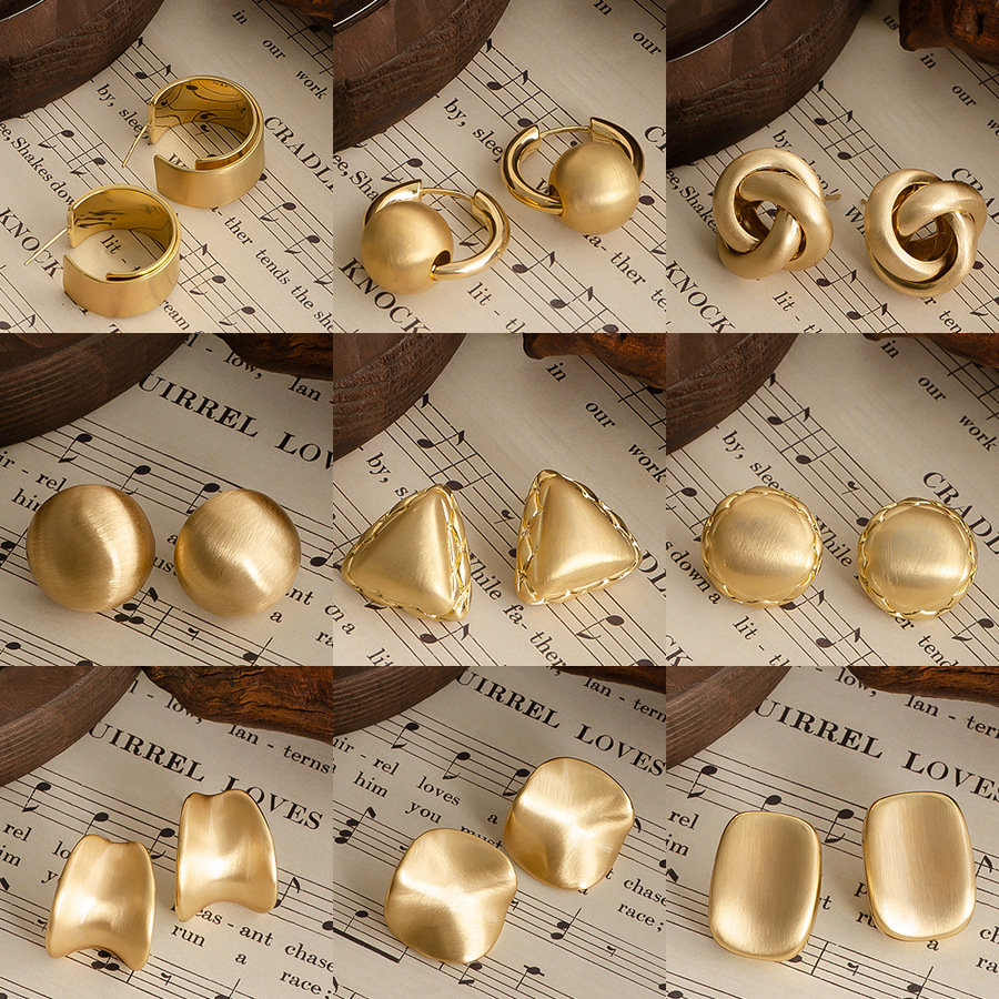 欧米ins風s925銀針伸線幾何学立体高級感軽贅沢イヤリングピアス