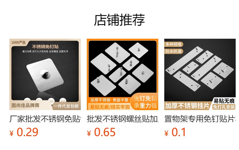 不锈钢螺丝贴无痕承重挂钩相框墙钉粘胶金属免钉贴免打孔挂钩