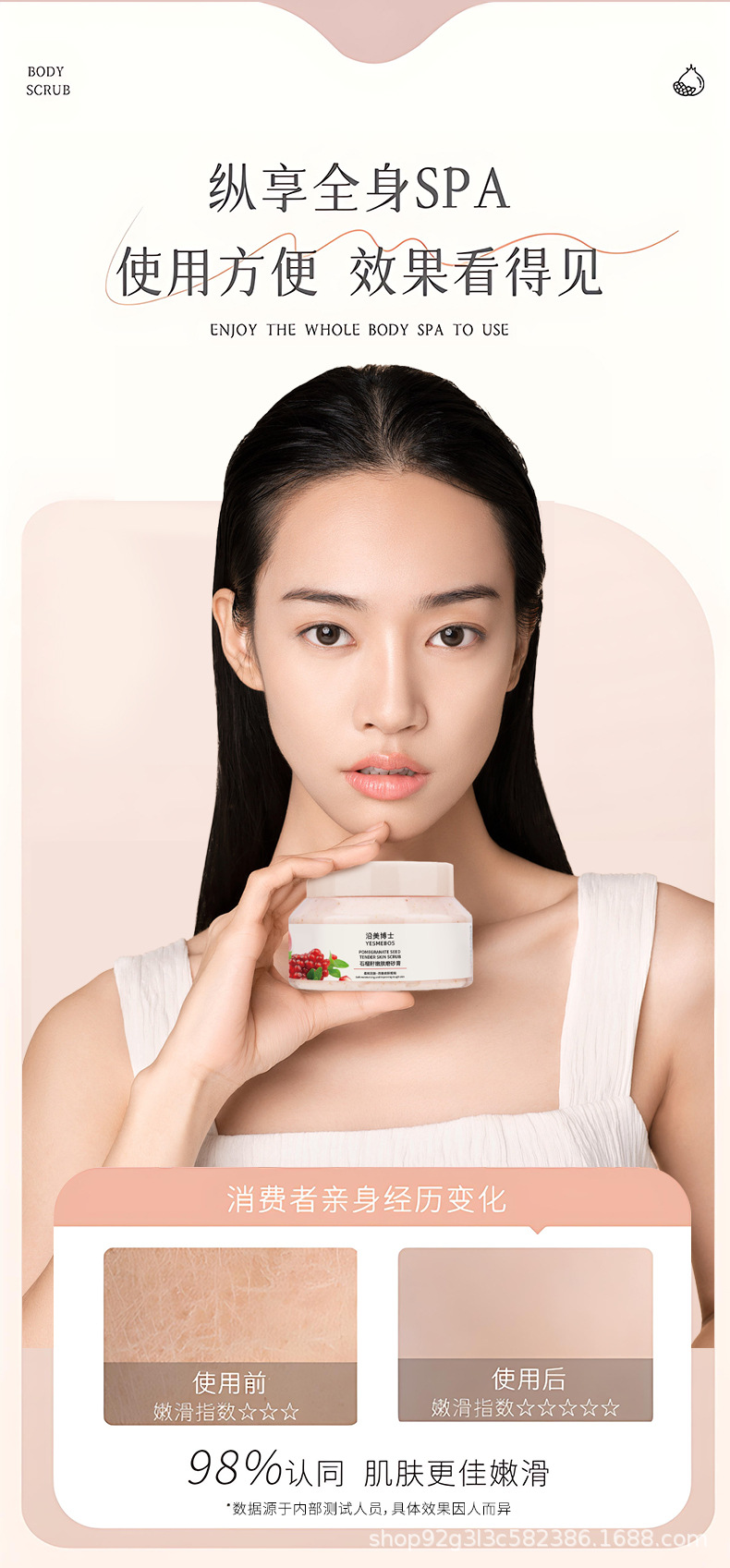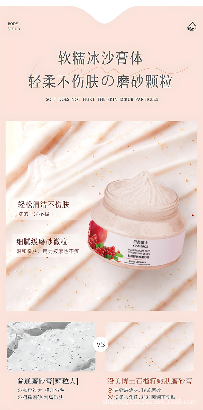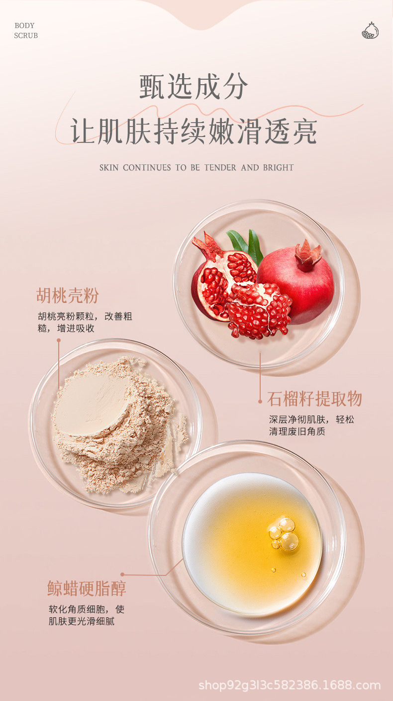 沿美博士石榴籽磨砂膏滋润保湿洁净肌肤全身去角质深层清洁嫩滑