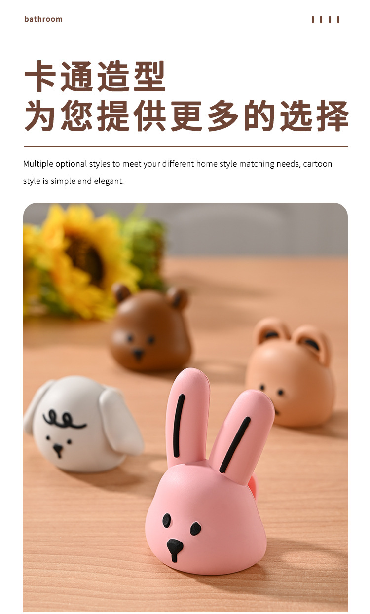 韓国製のかわいいクマ型シリコン製壁掛け歯ブラシホルダー、穴あけ不要、かわいい漫画風吸盤式浴室歯ブラシホルダー