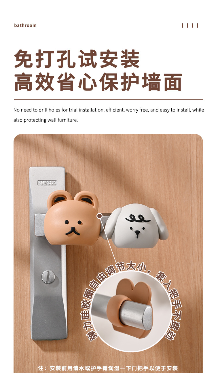 メーカー韓国クマアヒルパンチフリードア衝突防止パッドルームバスルームドアハンドルシリコンサイレント保護パッド
