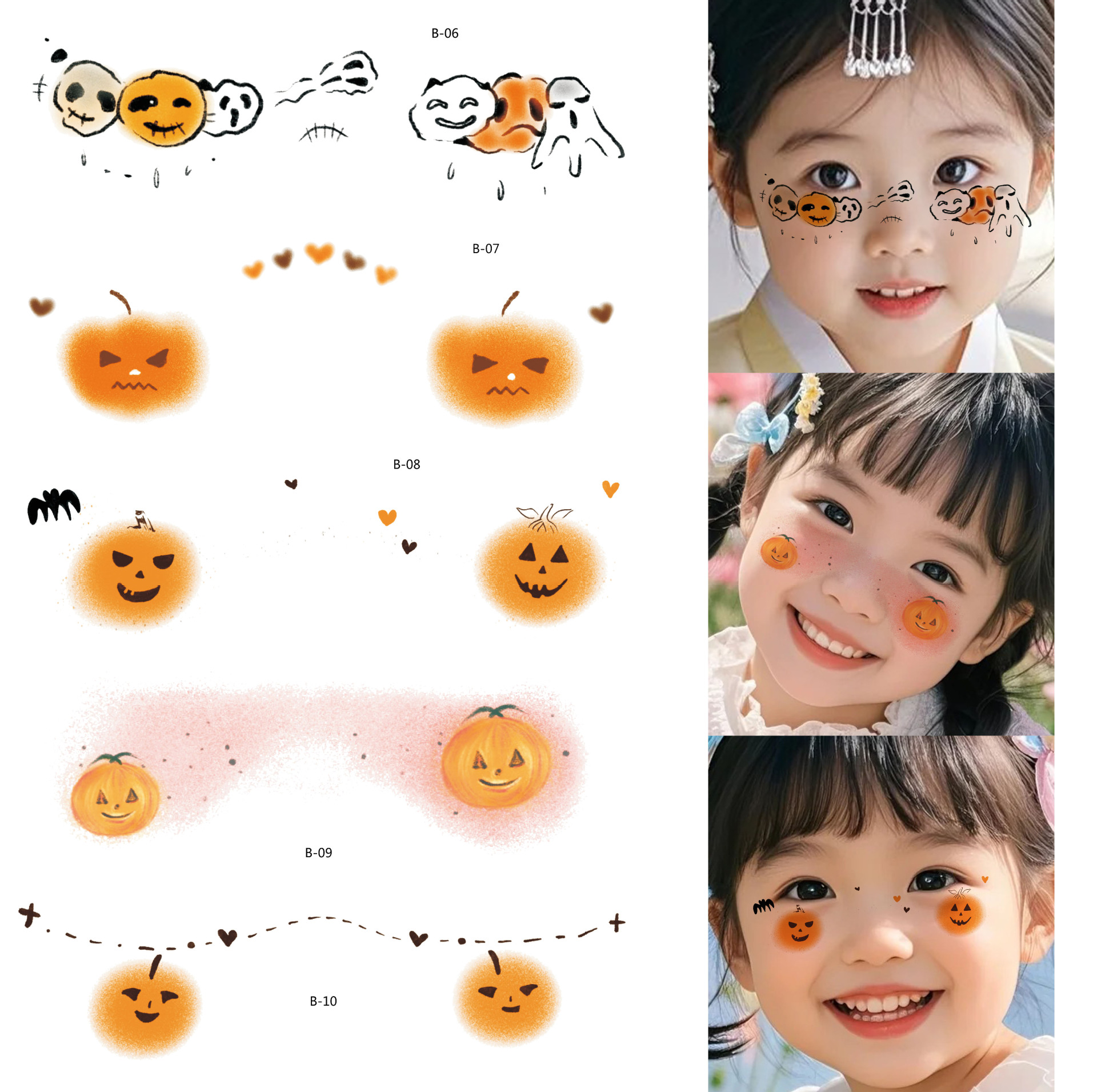メイクアップフェイスステッカー、スノーフレークタトゥーステッカー、カスタムメイドの赤い愛の漫画新年メイクアップ、かわいいハロウィーンタトゥーステッカー