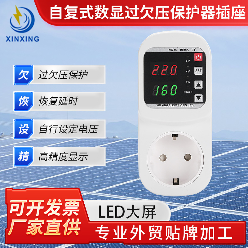 数显自复式过欠压 过欠压保护器插座 自动复位过欠压延时 欧插