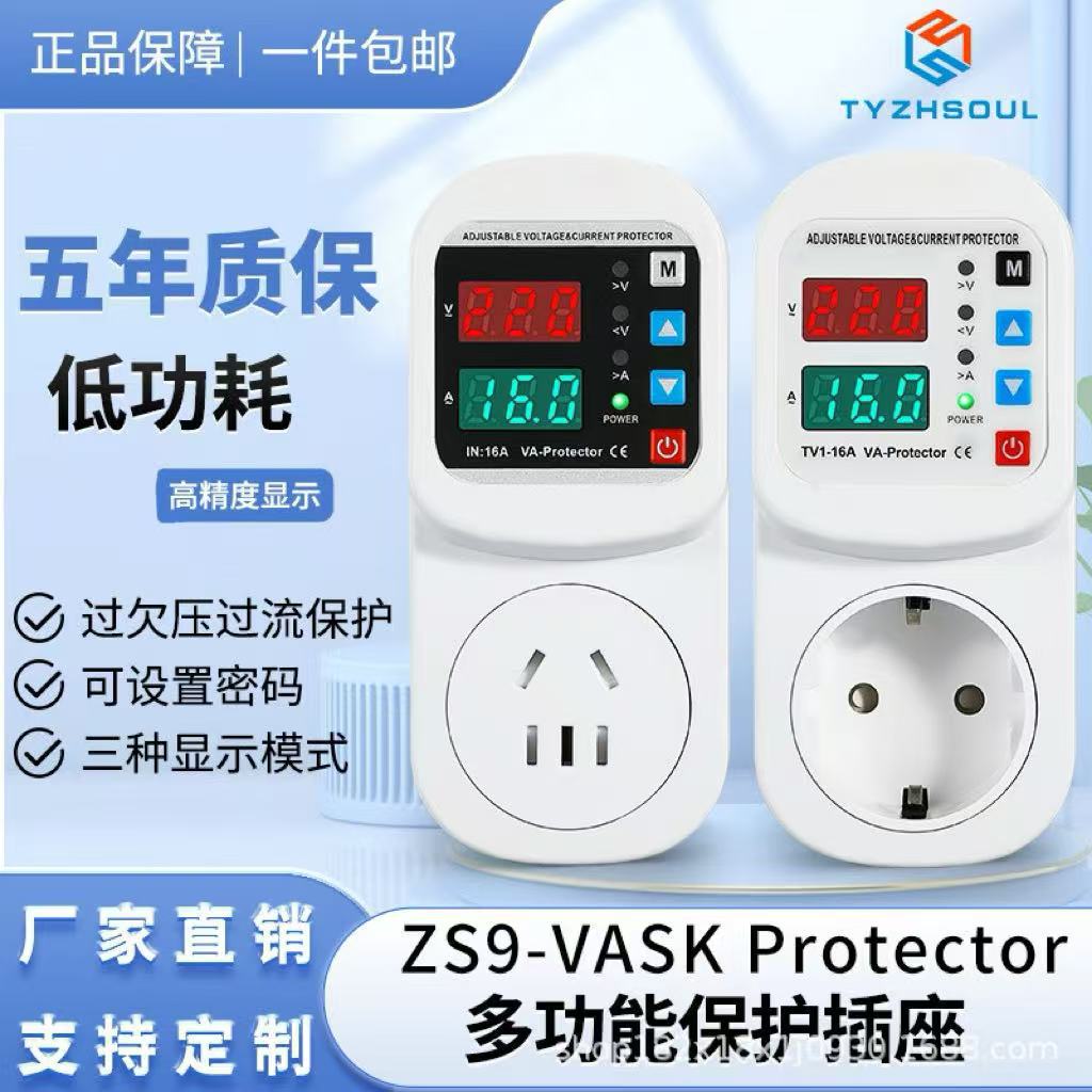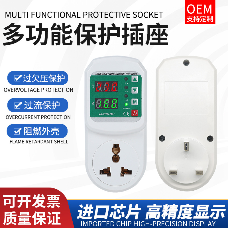 自复式数显过欠压保护器插座电压电调可调国标欧标延时家用限流器