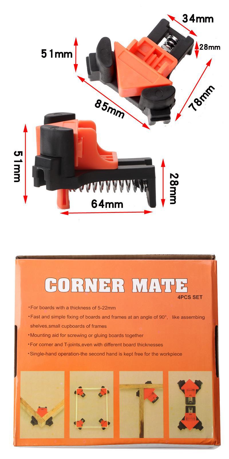 90度木工直角固定クリップ 90度直角クリップ フォトフレームクリップ 4個箱入り 調整可能な木工スプリングクリップ
