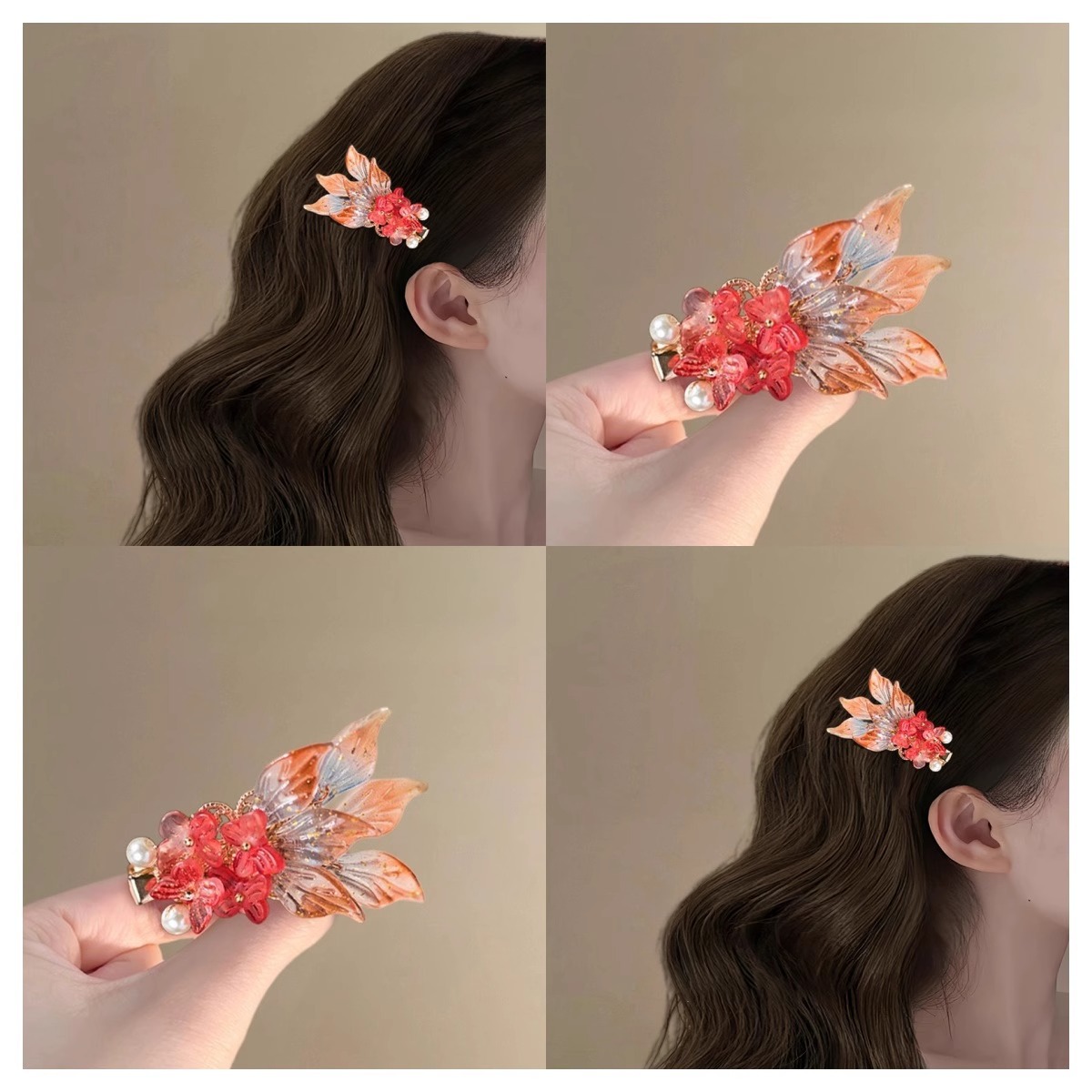 古風漢服髪飾り錦鯉錦鯉色ヘアピン花長流蘇仙気重工錦鯉ヘアピン少女超仙対クリップ