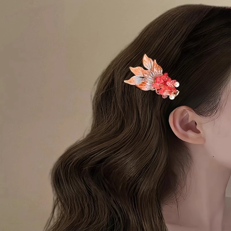 楊冪同金彼岸花頭飾りヘアクリップ2025夏新作サメクリップ漢服髪飾り古風クリップ