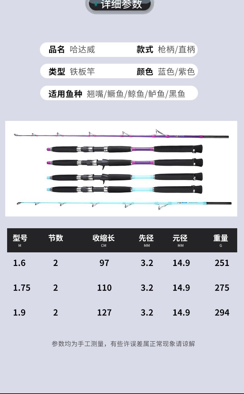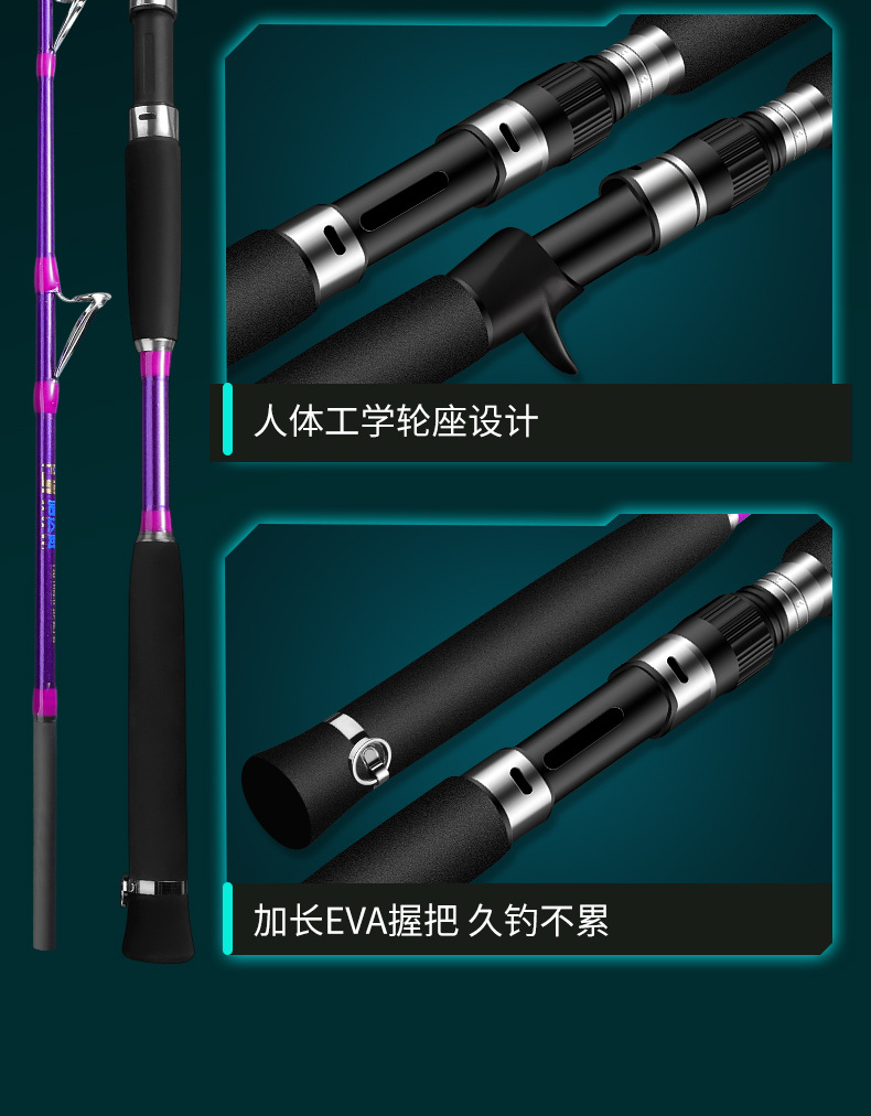 慢摇铁板竿近海船杆一本半鱿鱼路亚竿插节1.83 米1.9米高灵敏直柄