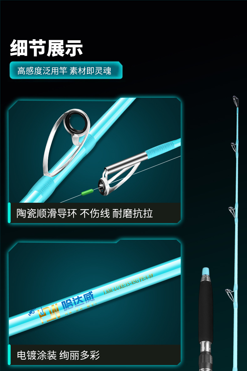 洁威 碳素铁板竿近海船钓竿路亚竿 80号 远投海杆海钓船竿 白果子