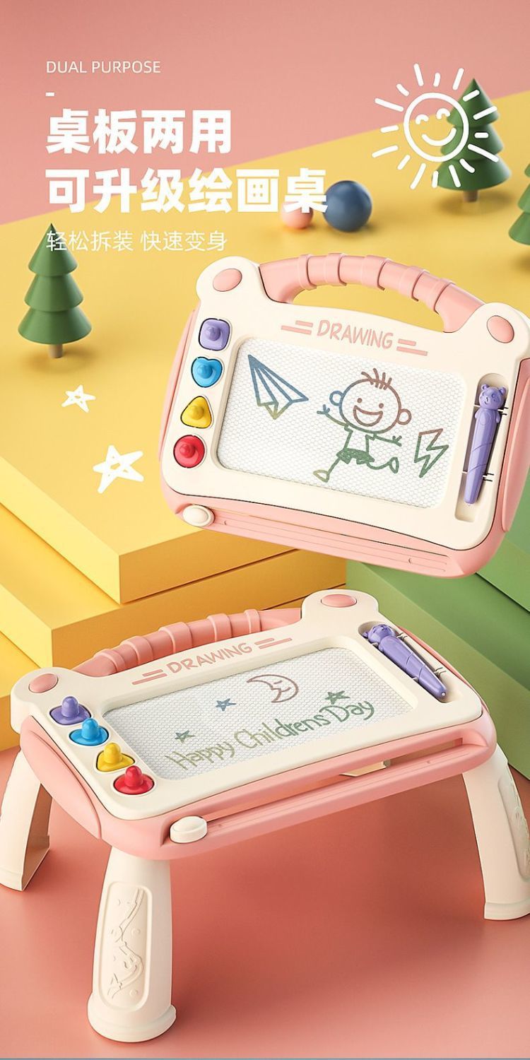儿童大号磁性画板桌绘画画桌涂鸦可反复擦写字板彩色早教玩具宝宝