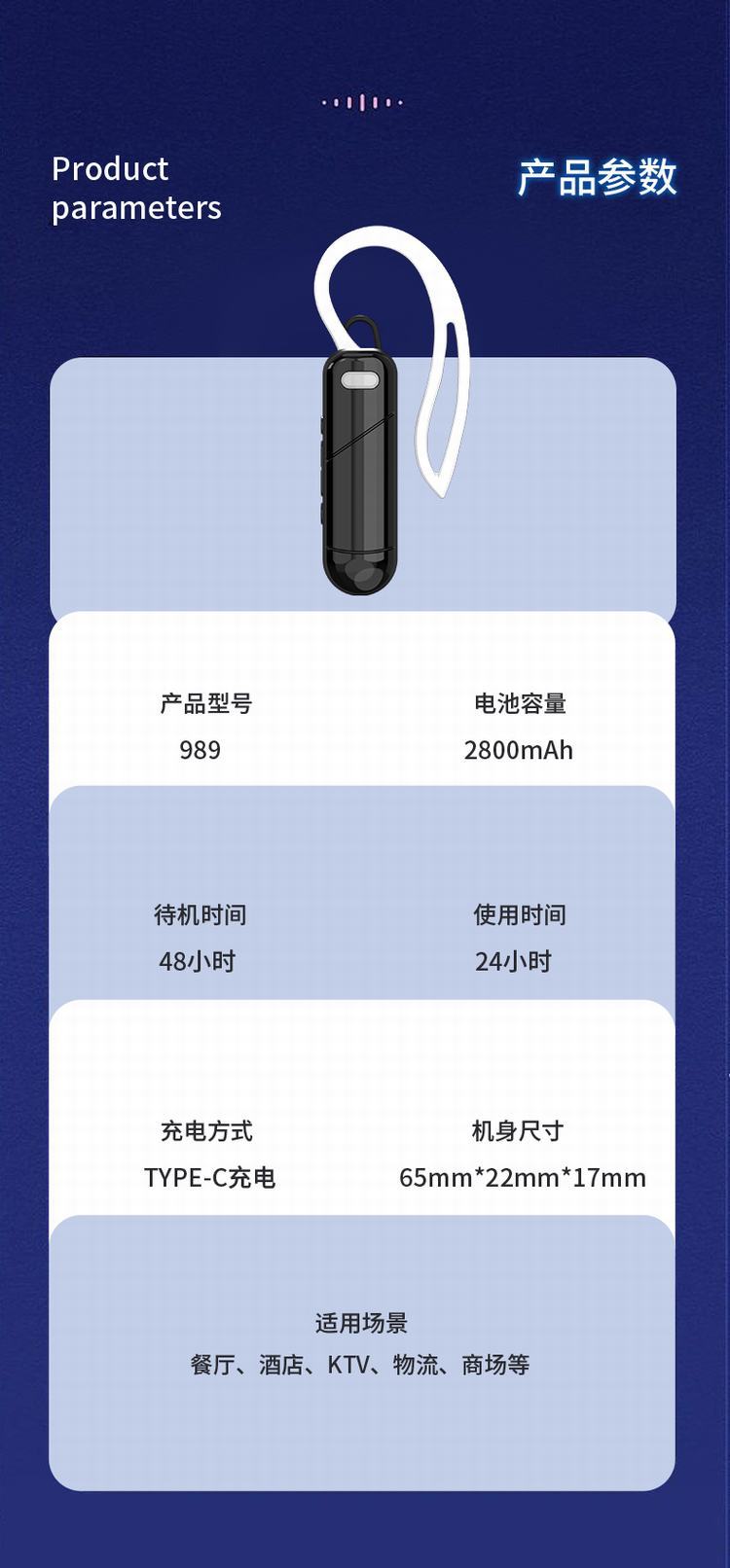 ワイヤレスミニトランシーバー Bluetooth イヤーフック小型機小型美容室、レストラン、ホテル、レストラン専用