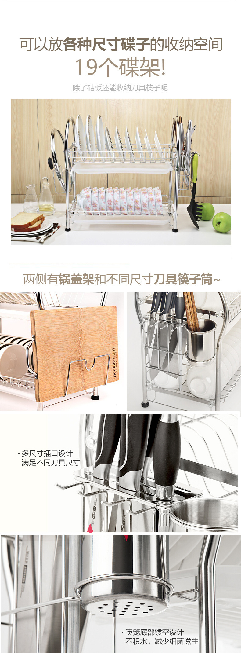 多機能厚みのある箸チューブ排水ラックキッチン箸ケージ箸ナイフとフォーク収納ラックラウンド棚工場卸売