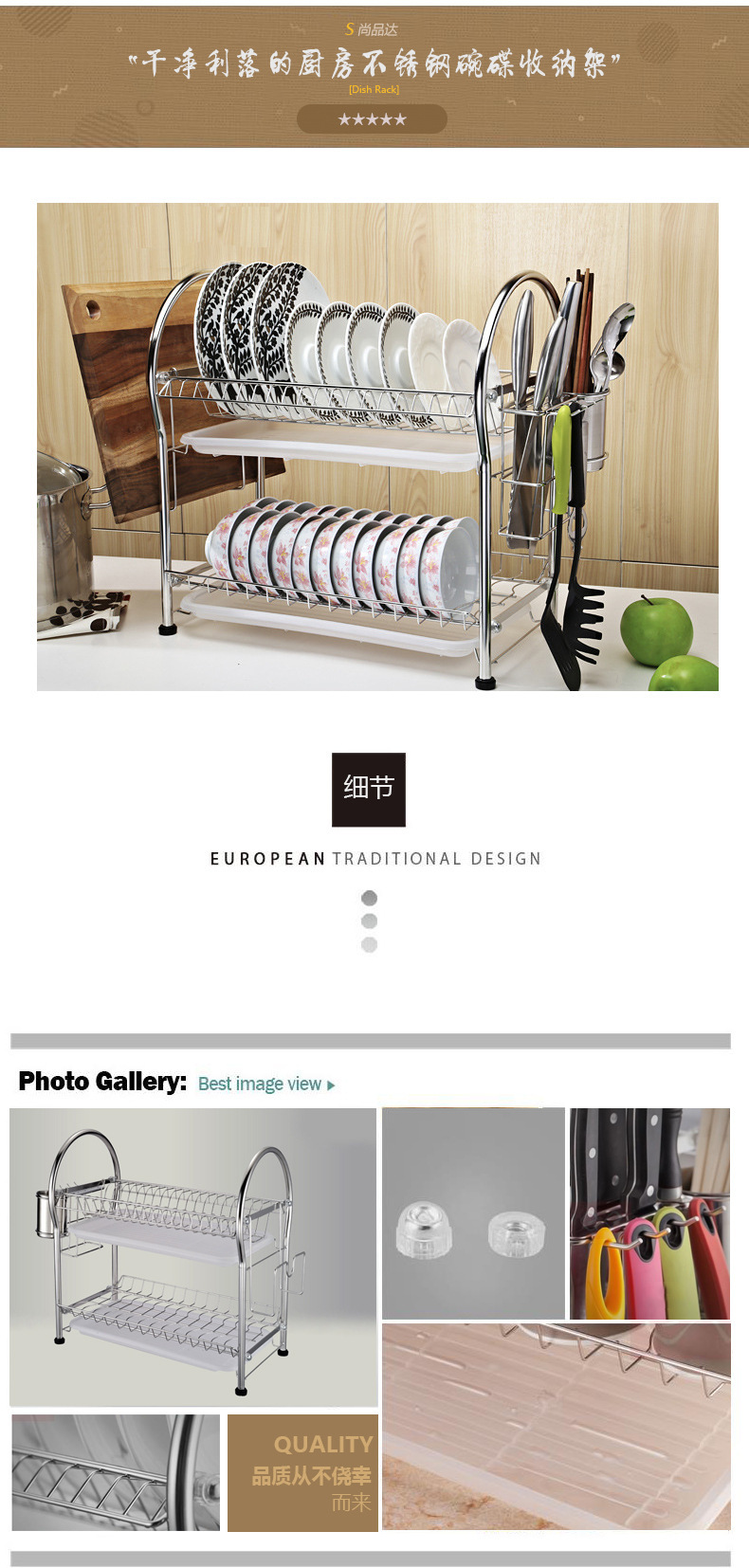 ステンレス製キッチンディッシュラック収納ラック二層ディッシュ収納ラック高価値家庭用ディッシュラック
