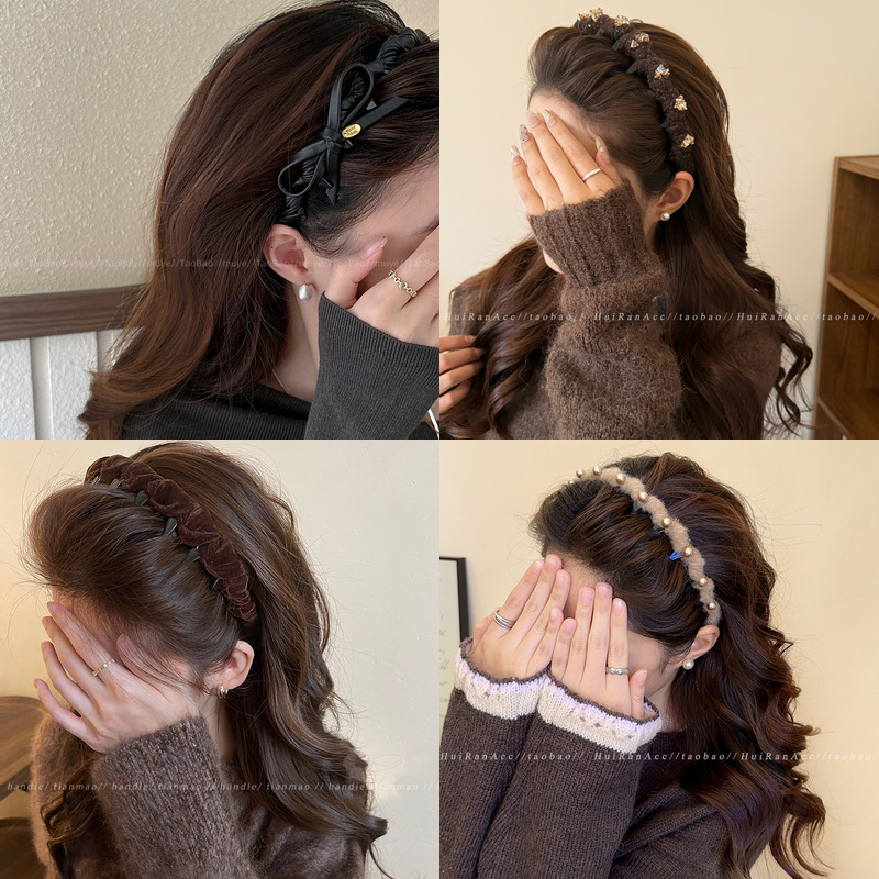 毛绒发箍女2025新款秋冬高颅顶带齿发箍蝴蝶结百搭头箍压发卡发饰