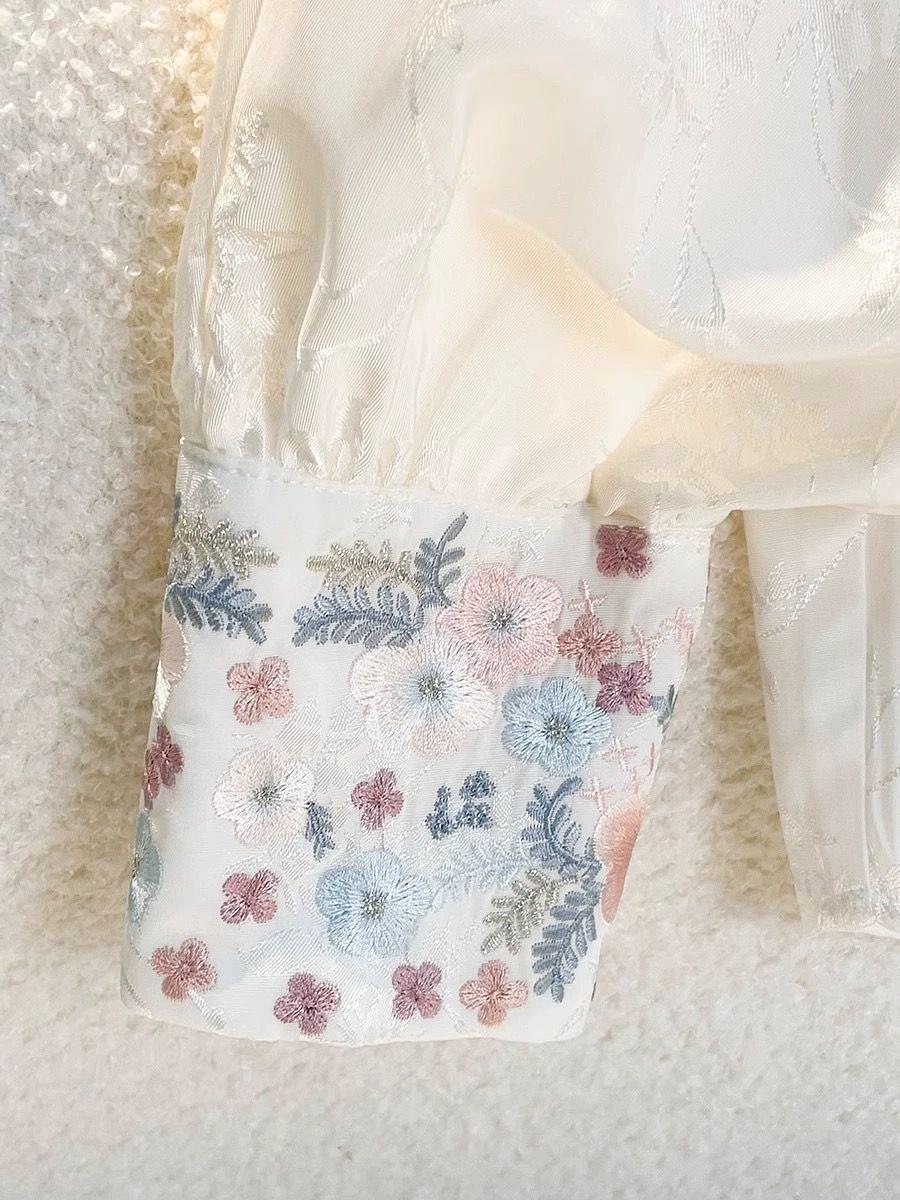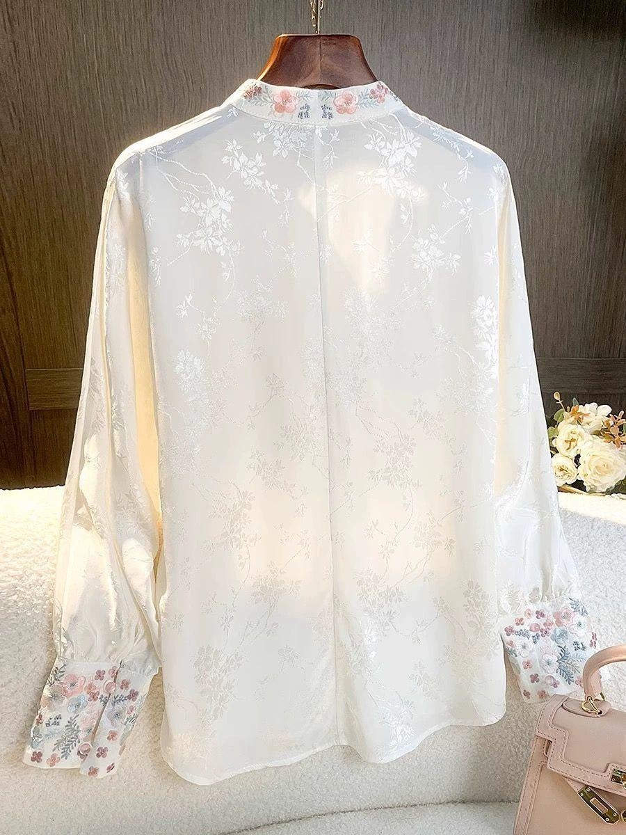2025早春新中国式清冷上着白刺繍復古シャツ女性禅意盤ボタン唐装国潮漢服