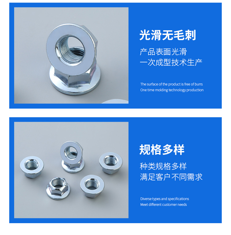 メーカーは六角フランジナット、平底歯付き滑り止めロックナット、ステップナット、ハードウェアアクセサリーカスタマイズを供給しています