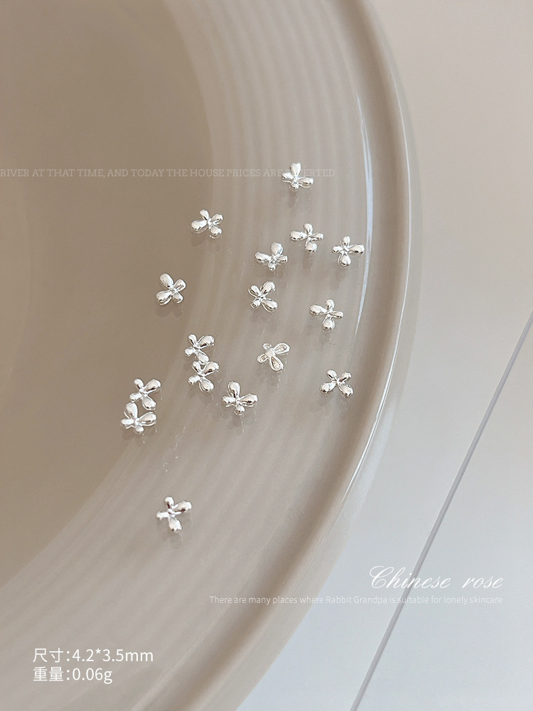 ネット赤ミニ合金蝶ネクタイネイルアクセサリー銀色立体軽贅沢ネイルアクセサリー卸売り
