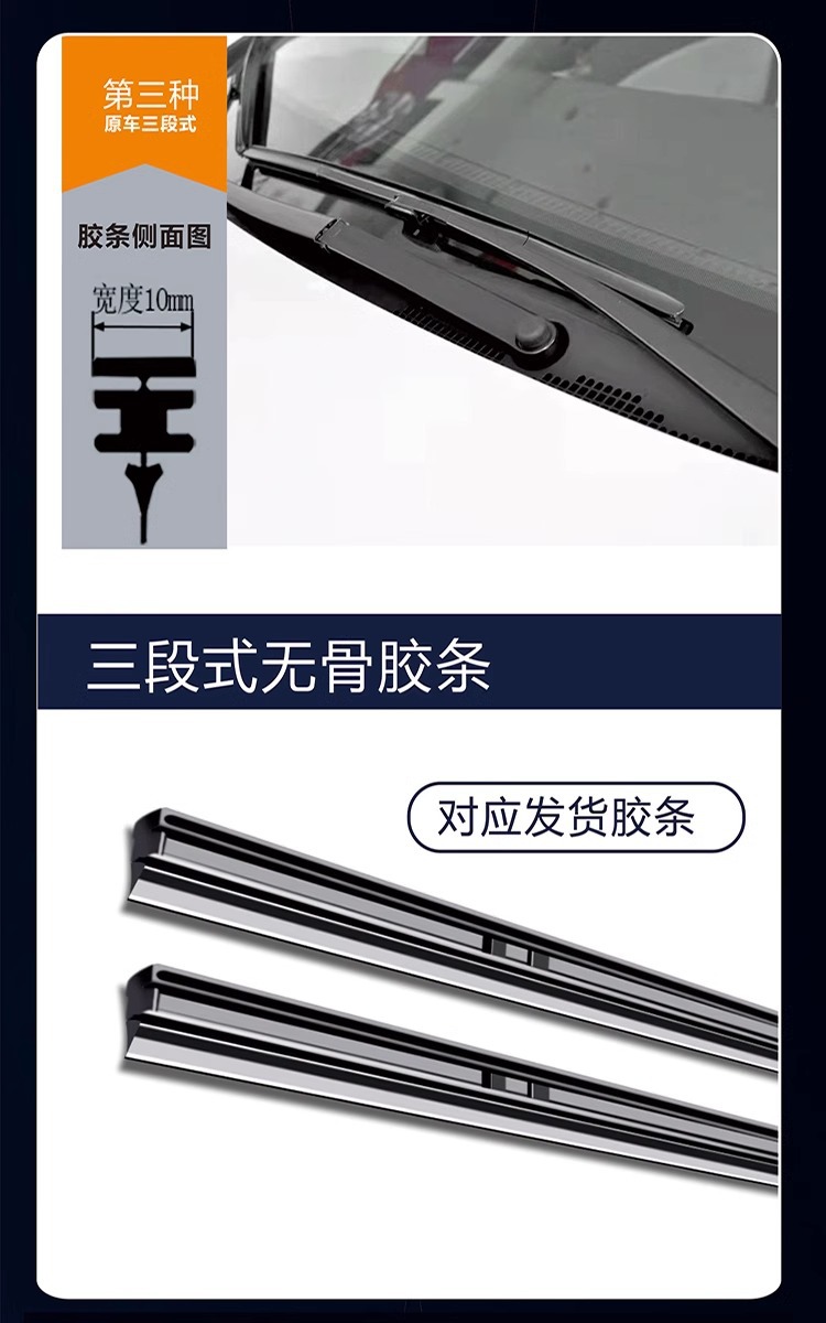 工場直販 車用ワイパーストリップ ワイパー鉄フレーム 骨なし 3セクションストリップ ワイパーブレード オリジナル フロントリアレイン