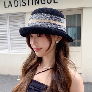 韓国のレトロな文芸の毛の格子の八角の帽子の春秋の男女のカップルのファッションのカジュアルな百合の千鳥の帽子