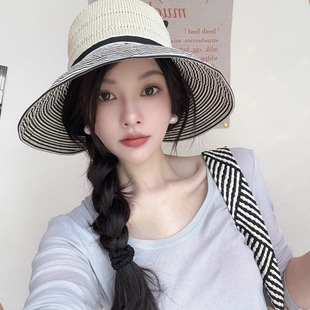 新しい両面折りたたみ式ポニーテール付き大きなつばの日よけ帽子、女性用、夏の顔見せ、小さな日焼け止め、シンプルな中空帽子