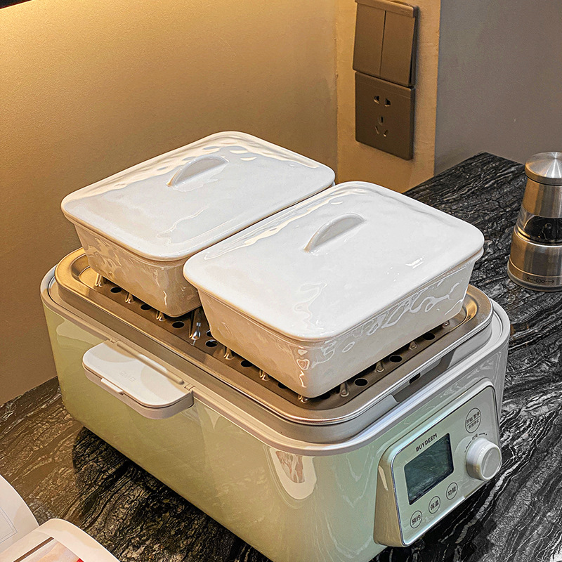 蓋付き卸売蒸しボウル家庭用セラミック長方形深皿電子レンジ焼き丼電気蒸し器蒸し