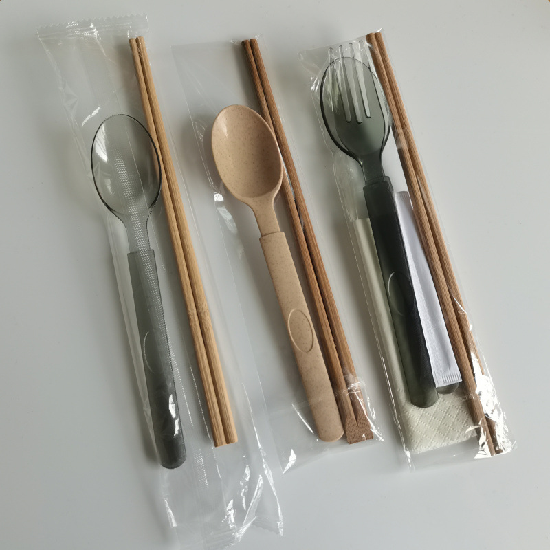 卸売独立包装箸スプーンフォークつまようじペーパータオルセット組み合わせ炭化箸極厚アメリカンスプーンロング