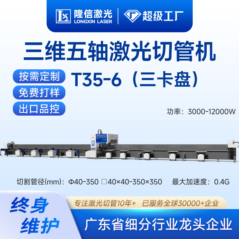 隆信LX-T35六代坡口大型激光切管机12000w三卡盘高功率金属切割机