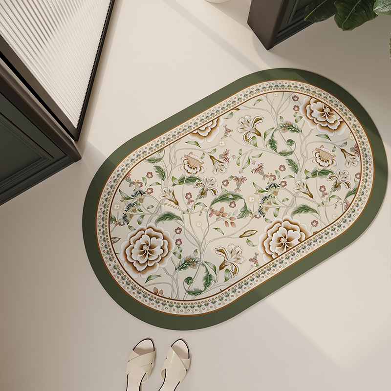 フランスの花柄バスルームフロアマット、ハイエンドのトイレドア速乾性、吸水性、滑り止めフロアマット、家庭用珪藻泥フロアマット